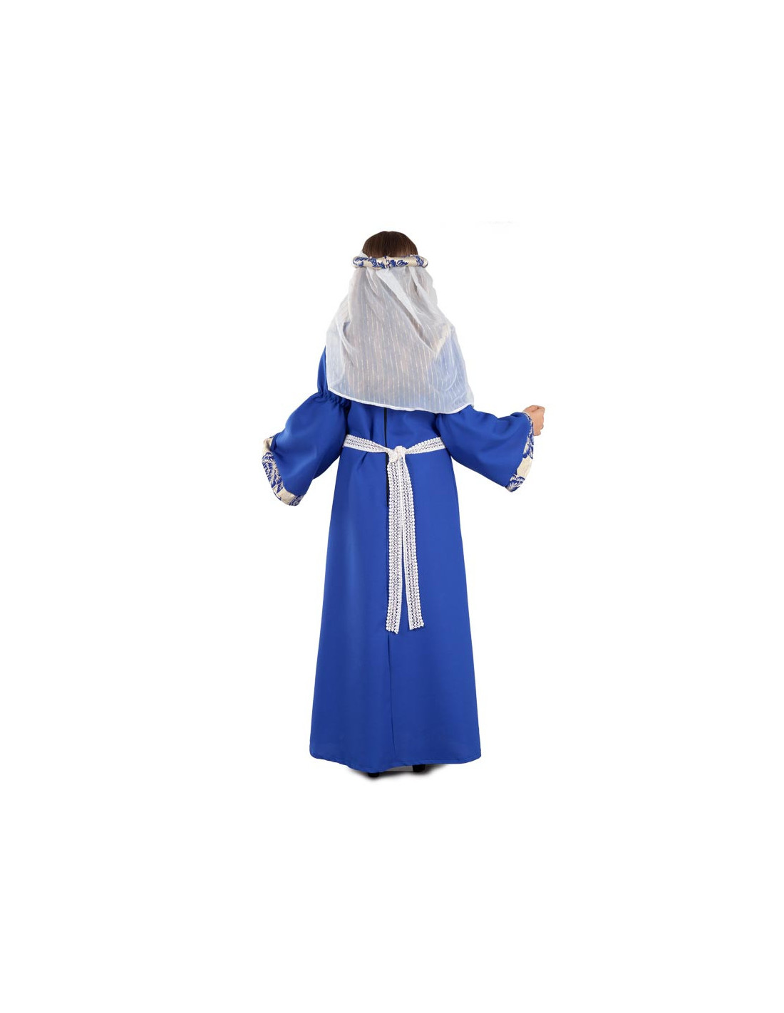 El disfraz de Princesa Medieval azul infantil contiene un precioso vestido azul con detalles de tela brocada, manga con goma elástica en el brazo y con terminación acampanada. Además incluye un tocado con velo con el mismo brocado del vestido.