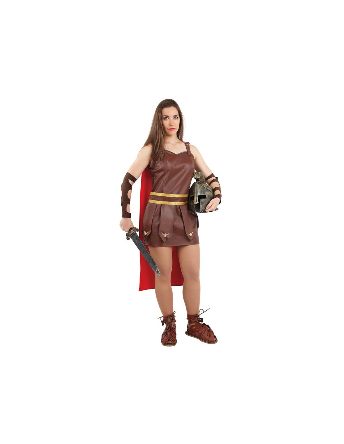 Defiende el imperio como una auténtica guerrera con este disfraz de romana gladiadora. El traje incluye vestido, capa y brazaletes. No incluye casco ni espada.