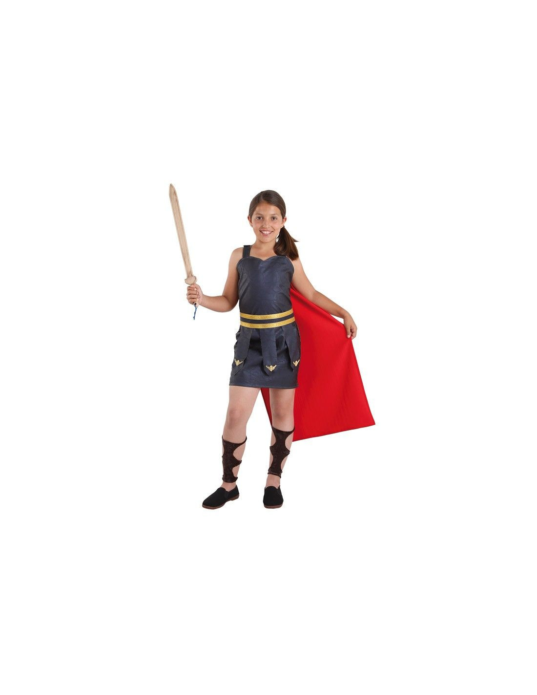 El traje incluye vestido, capa y espinilleras en polipiel de alta calidad y con adornos de metal en la faldilla. No incluye espada. Saca tu espada y pelea para defender el antiguo imperio romano de los invasores del norte y conquistar nuevos territorios.