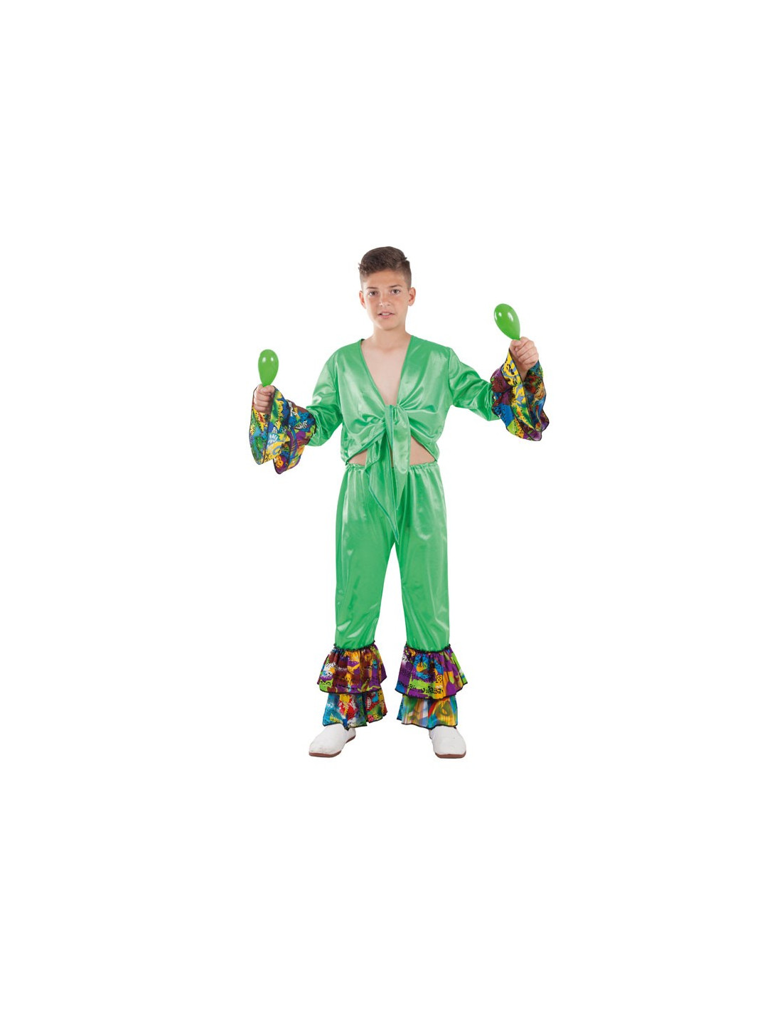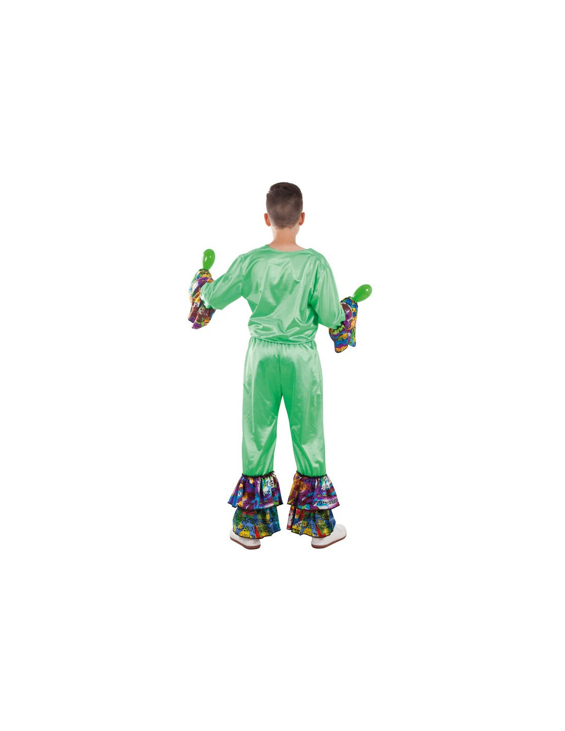 Disfraz de Rumbero Caribeño para niño que incluye casaca y pantalón en color verde. No incluye maracas.