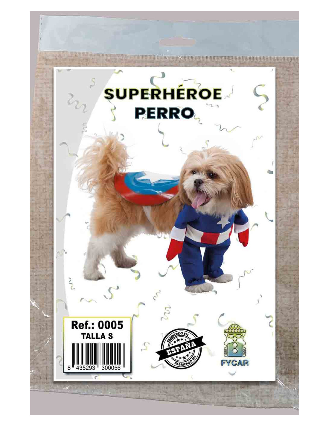 Disfraz de Superhéroe para Perro que incluye traje para la parte delantera y escudo fabricado en goma eva para la parte superior.