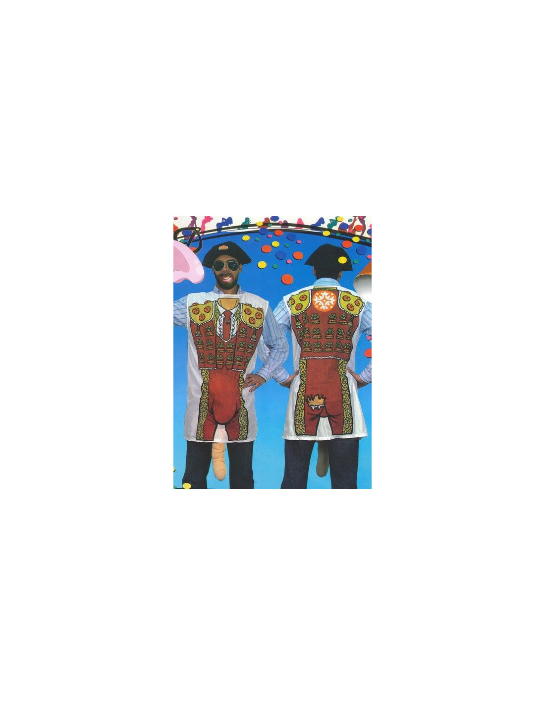 Camiseta sin mangas estampada simulando un torero sexy con largo pene. Contiene camisola y montera.
