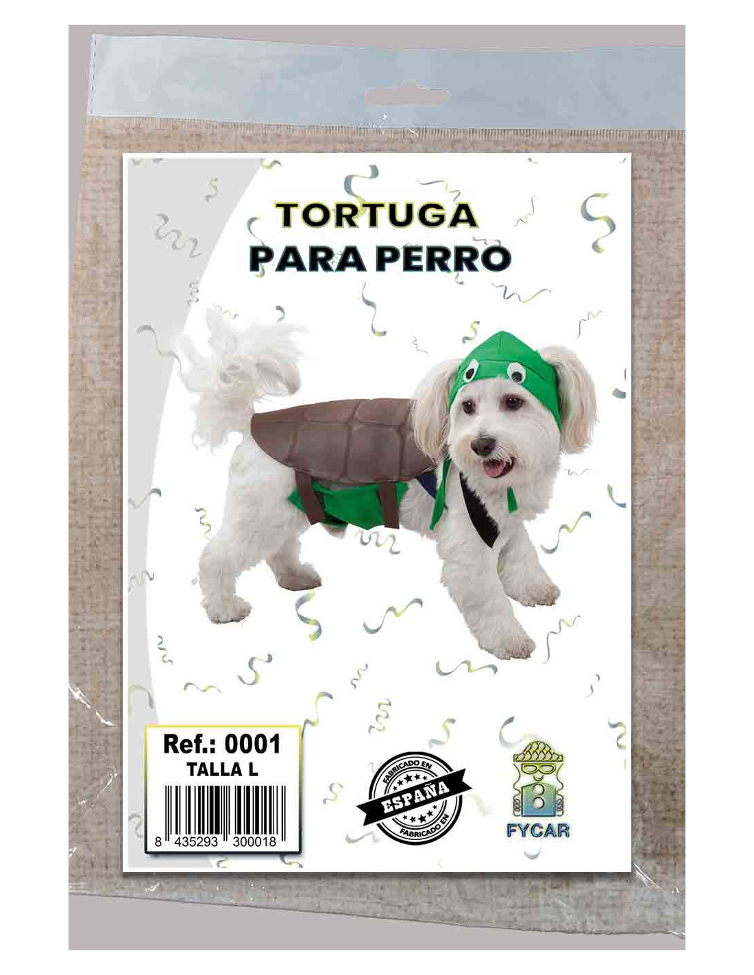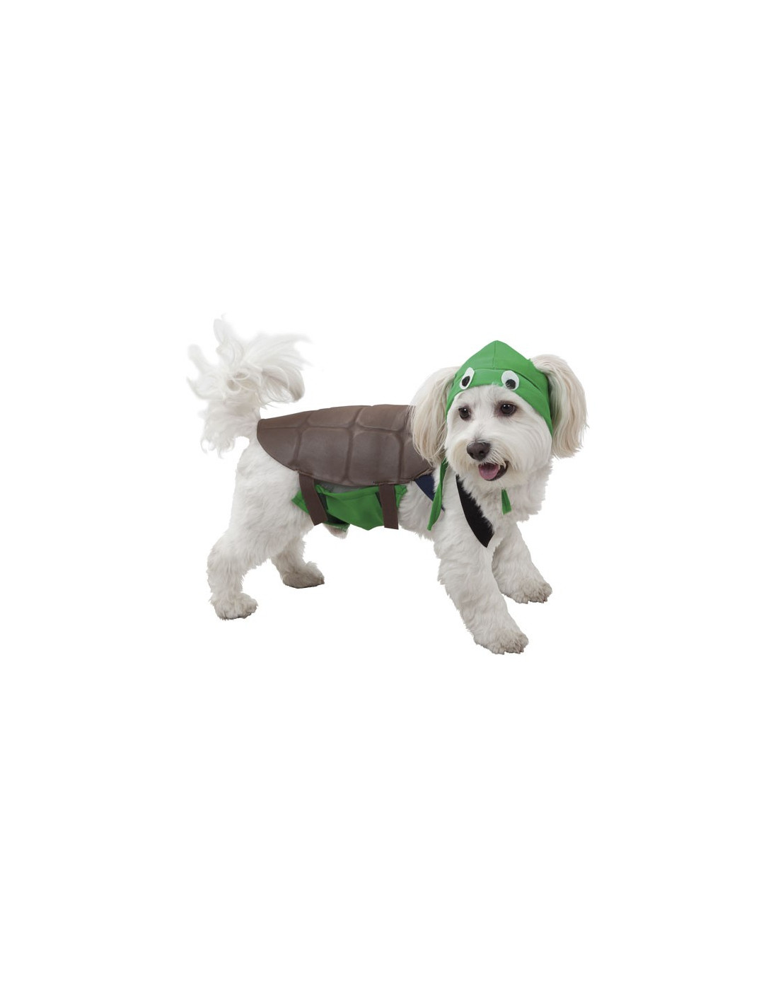 Disfraz de Tortuga para Perro con el que tu fiel amigo puede convertirse en uno de los animales más lentos sobre la faz de la Tierra. Compuesto por un gorro en color verde con ojos simulando la cabeza del animal, y un mono del mismo color con un caparazón fabricado en goma eva para la parte superior del tronco.