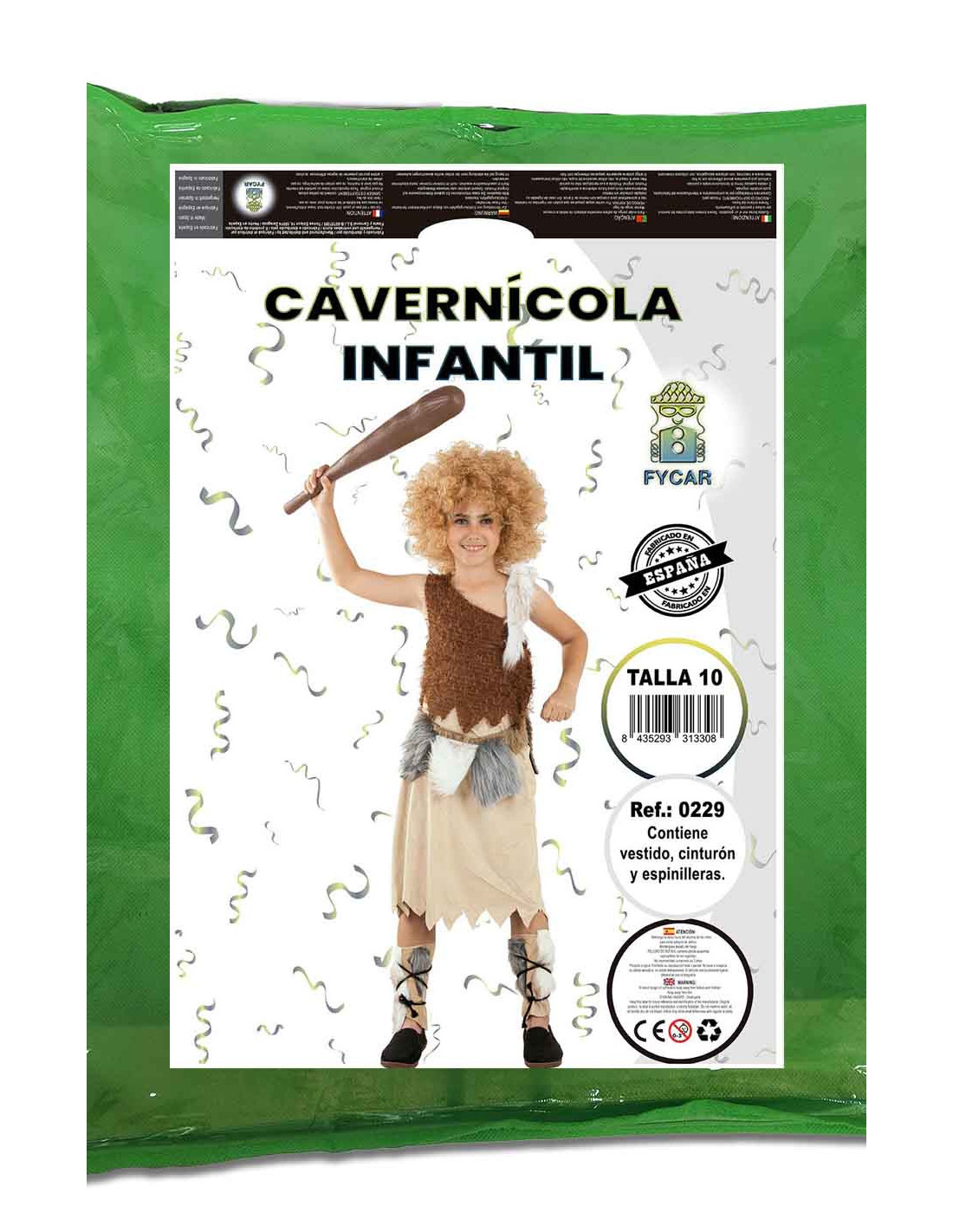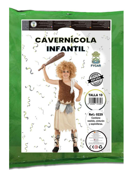 Vuelve a la prehistoria con este disfraz de Troglodita para niña. Compuesto por un vestido en colores marrones, un cinturón imitación a pieles de animales para demostrar quién es la auténtica primitiva de la familia, y espinilleras con tejido imitación de pelo de animal.