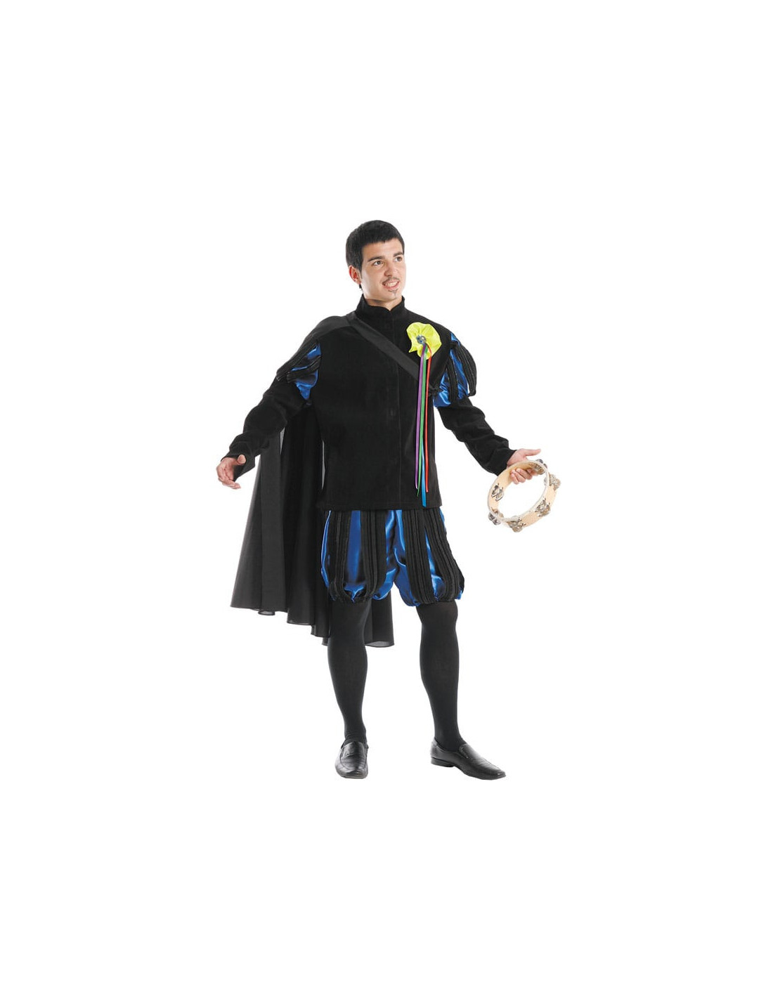 Enamora a tu chica cantándole una copla con este disfraz de tuno. Incluye chaqueta, pantalón, capa y escarapela en tejidos de raso y antelinas de muy buena calidad.
