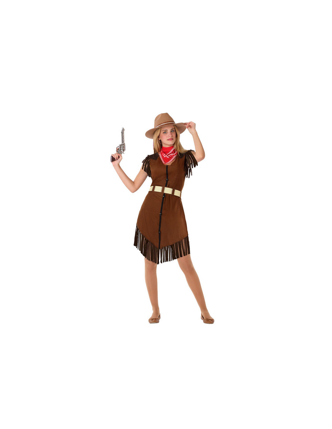 Disfraz de vaquera adolescente para Carnaval que contiene vestido, bandana y cinturón.