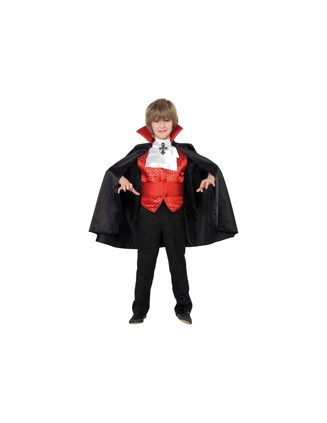 Disfraz Drácula para niño que incluye capa, fajín, corbanda y chaleco.