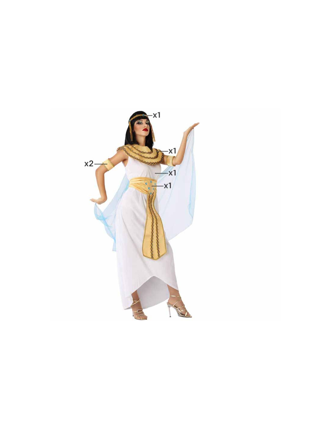 Siéntete como una autentica egipcia con este bonito disfraz al que no le falta detalle para que luzcas un precioso modelo en tu fiesta de disfraces. Este disfraz esta compuesto por vestido, tocado, cinturón, collar y brazaletes.  No incluye sandalias.