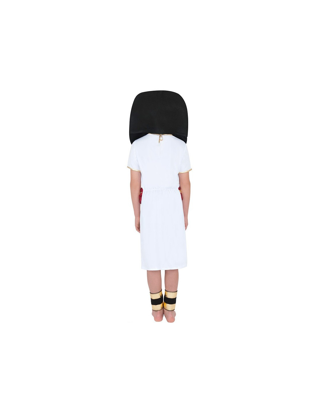 El disfraz de egipcio contiene una túnica blanca con cinturón, tocado y tobilleras.