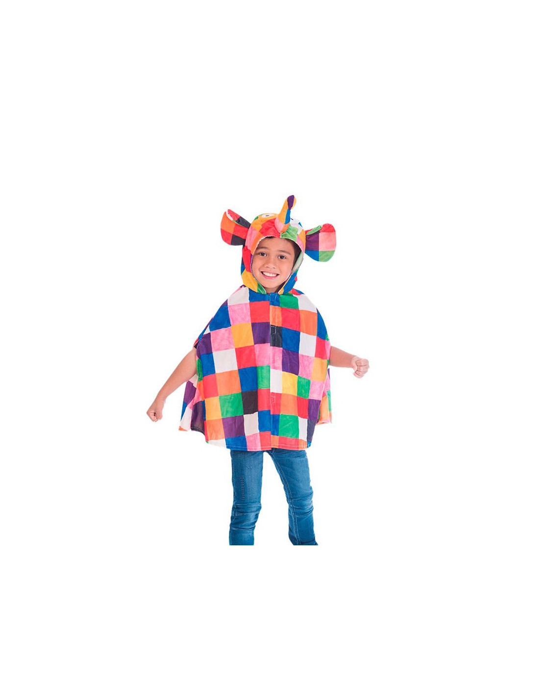 Este colorido disfraz elefante Elmer contiene una capa a modo de poncho al abrocharse y con capucha.