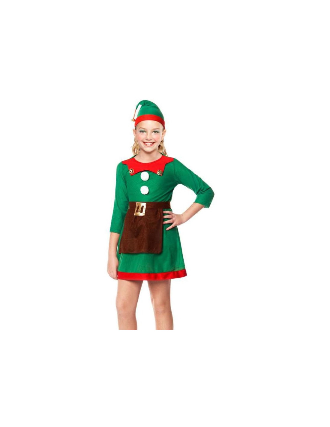 Disfraz elfa navideña infantil para eventos y celebraciones de Navidad. Tu pequeña se convertirá en una de las ayudantes del talle de Papá Noel.