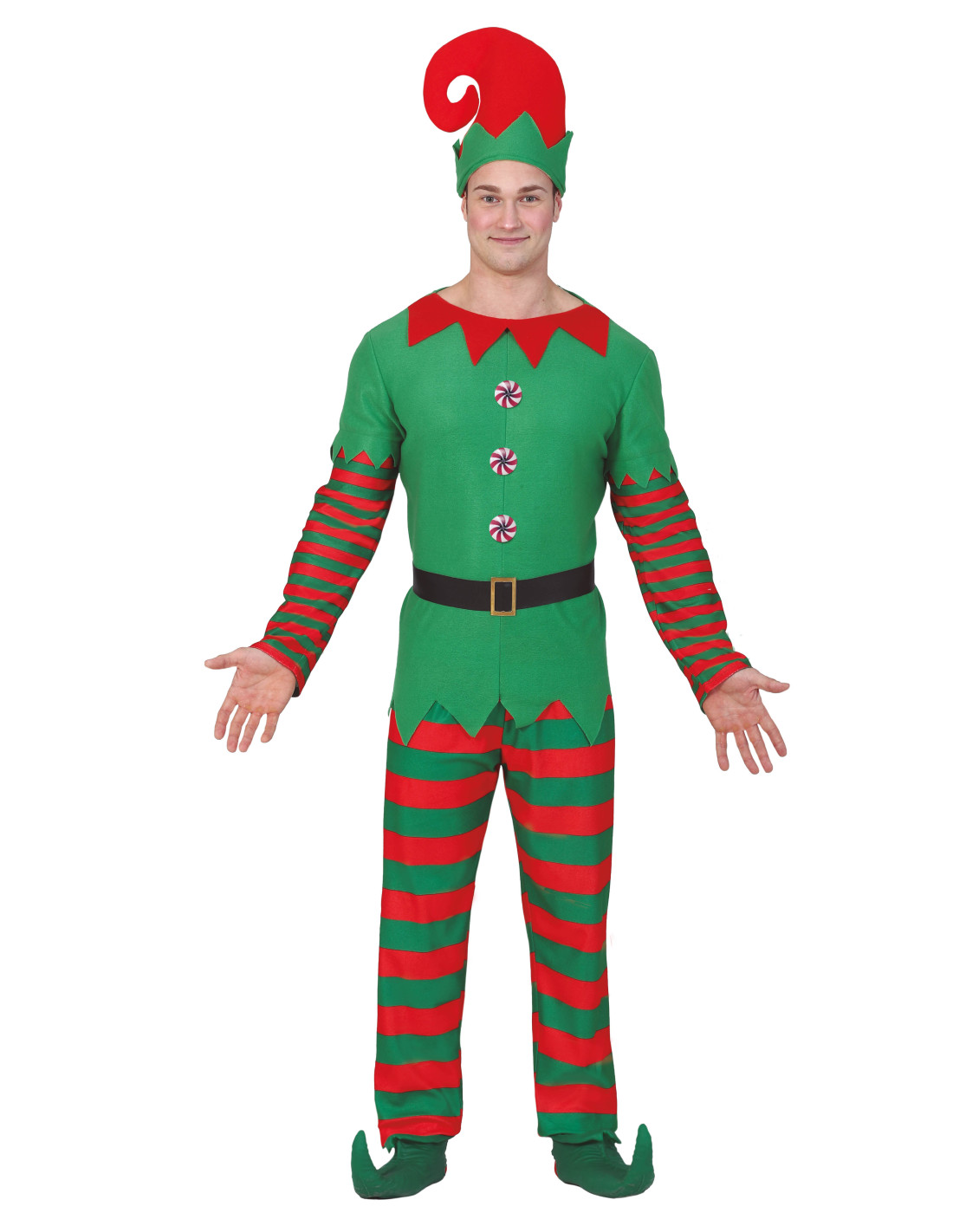 Original disfraz elfo navideño para hombre en eventos Navideños. Acompaña a Papá Noel en su visita a los peques de la casa.