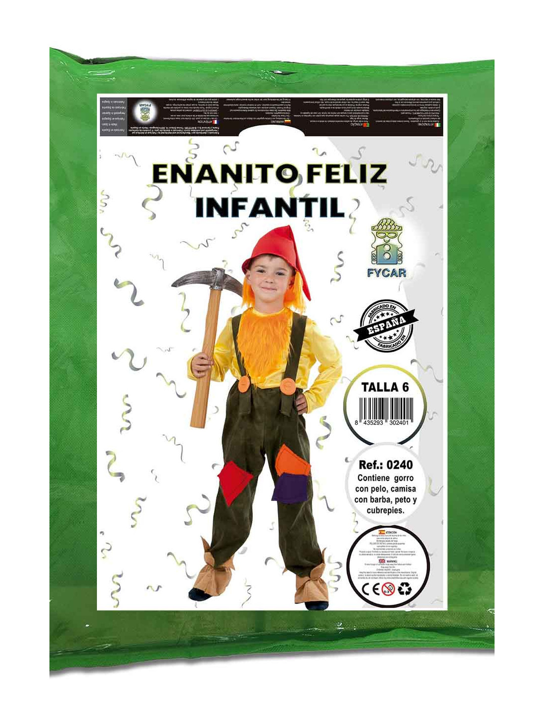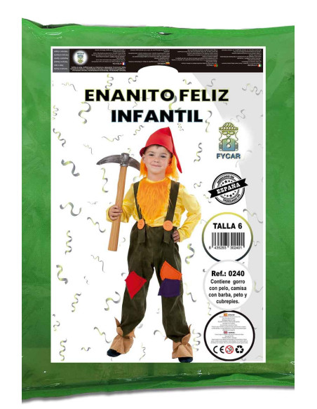 Disfraz enanito para niño con el que los pequeños se convertirán en los protagonistas de su propio cuento infantil. Haz equipo con tus amigos y no dejes que la villana se lleve a vuestra amiga la princesa. Con este disfraz de enanito los más pequeños estarán adorables en Carnavales o festivales fin de curso.