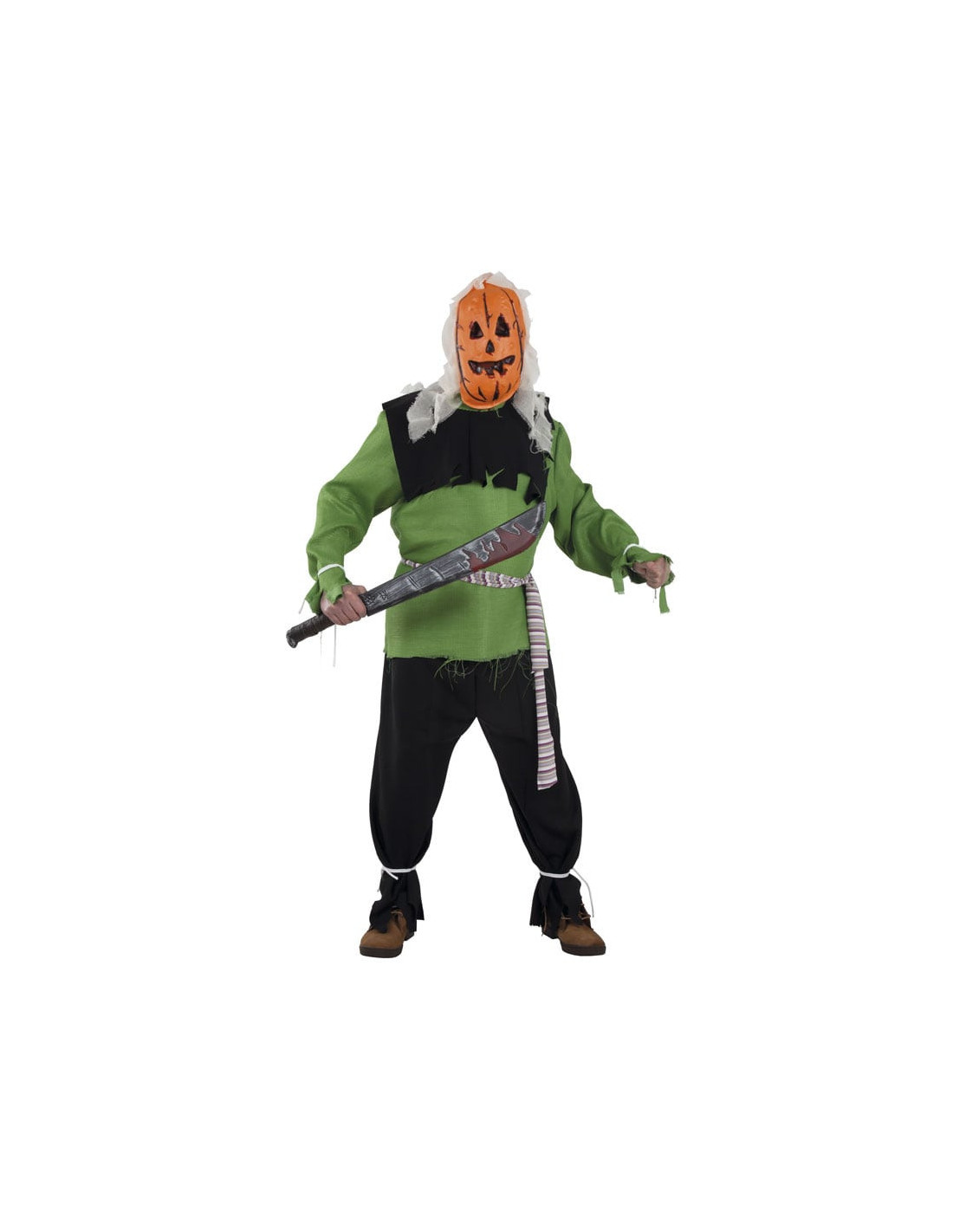 Disfraz espantapájaros Halloween para hombre que incluye máscara de goma eva con volumen y pintada, camisa, pantalón, cordones y cinturón. Ideal para fiestas temáticas de terror, disfraces o para ahuyentar a todos los que se acerquen por tu lado el fin de semana de Halloween.