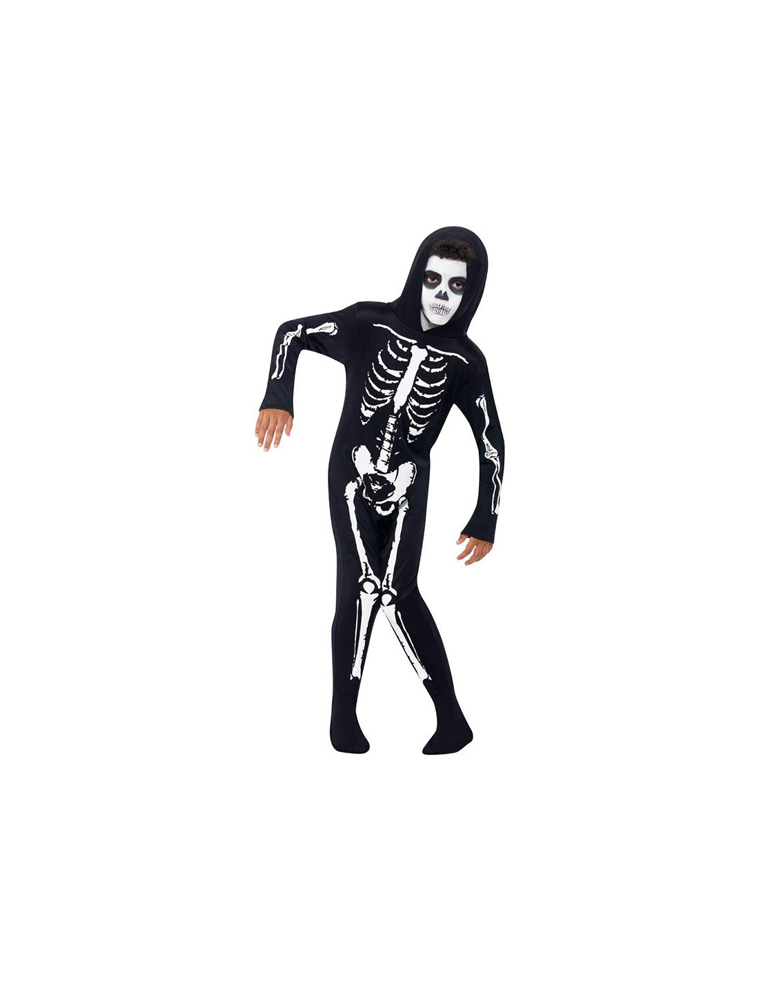 Disfraz esqueleto infantil unisex que incluye mono y capucha.