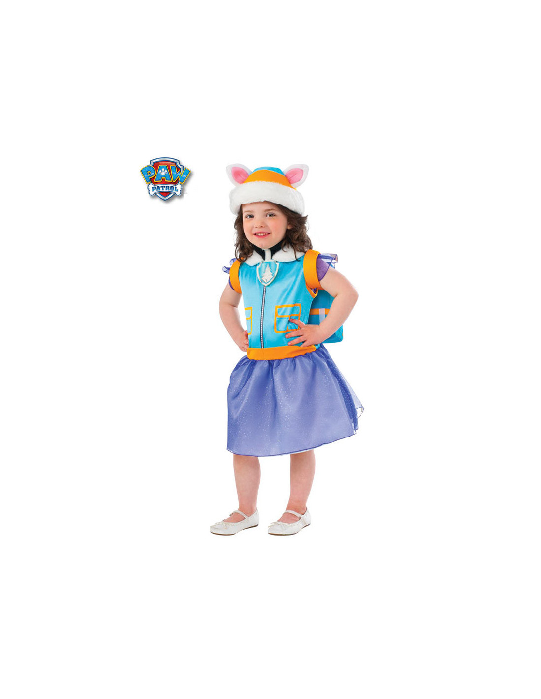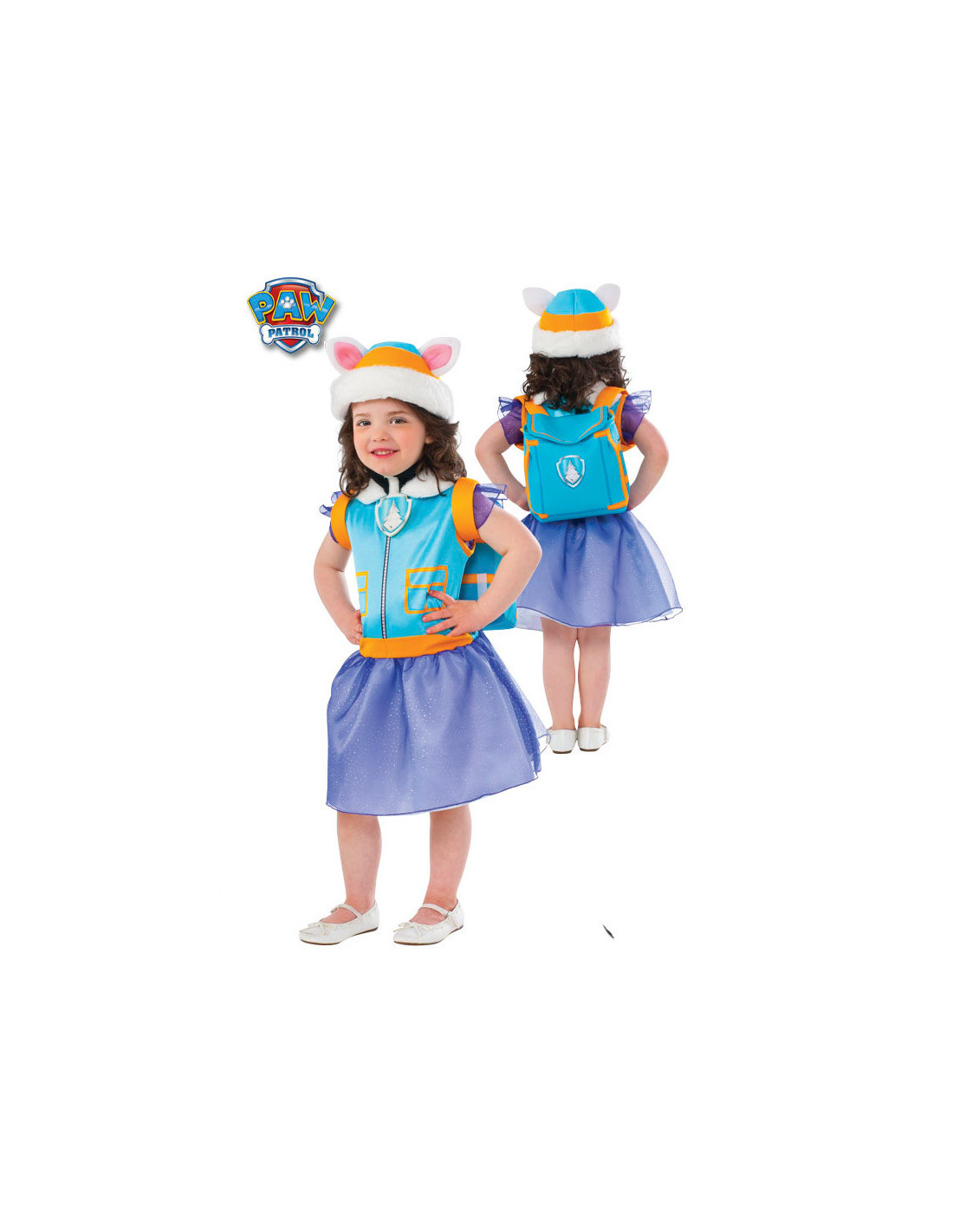 Disfraz Everest Patrulla Canina para niña compuesto por precioso vestido en tejido de punto estampado y tul brillante, gorro con orejas y mochila. Producto con Licencia Oficial Paw Patrol.