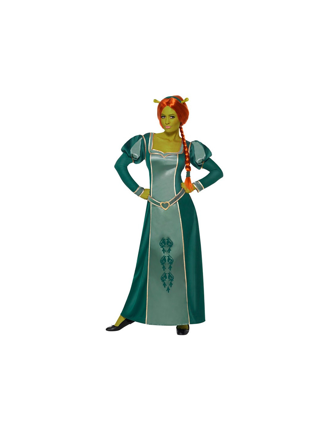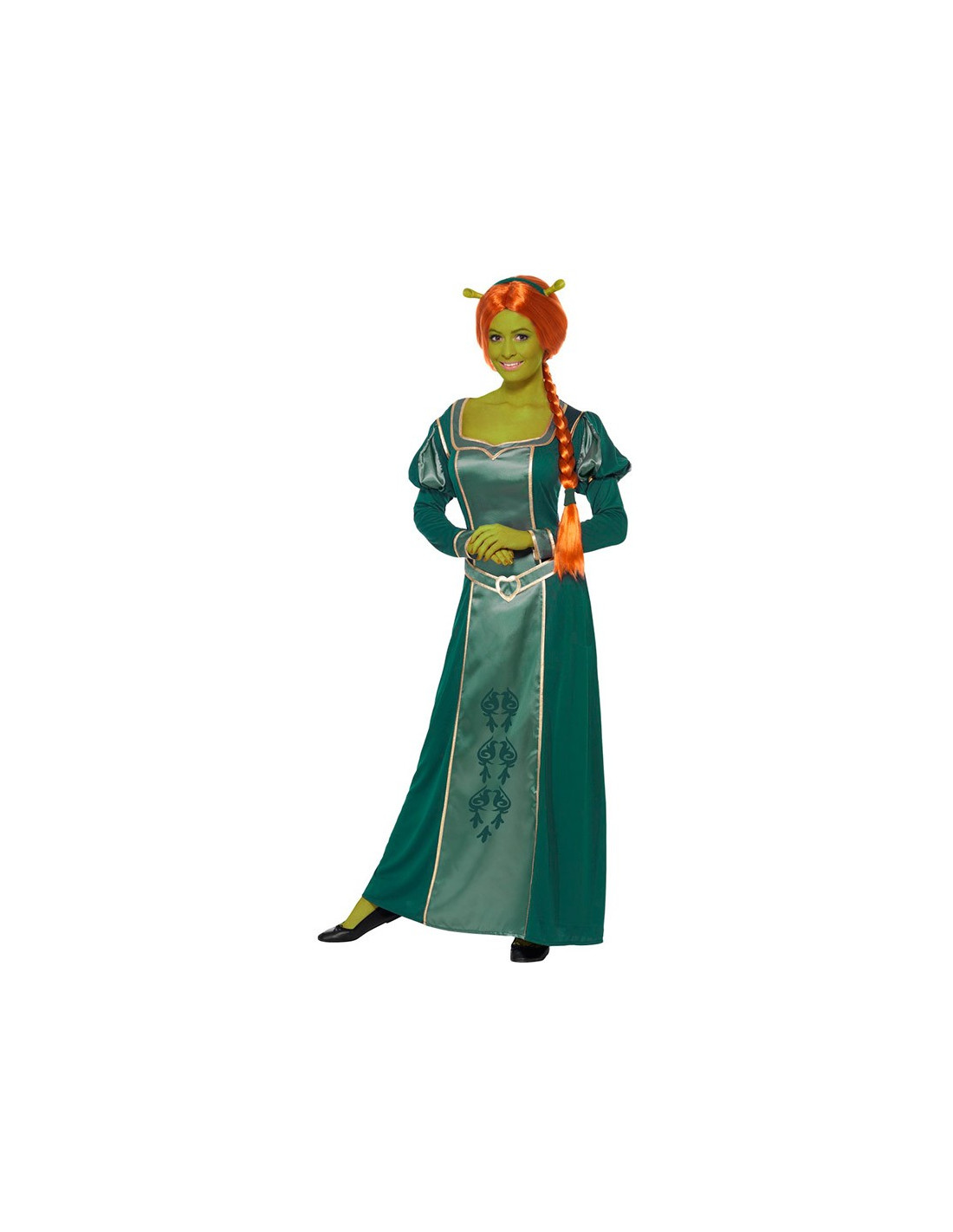 Disfraz Fiona de Shrek para mujer que incluye vestido, peluca y diadema.