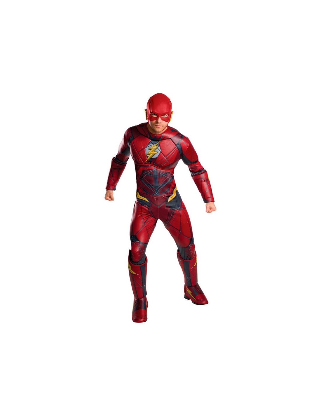 Disfraz de Flash Liga de la Justicia para adulto que Incluye mono entero deluxe con armadura acolchada, cubrebotas en 3D adjuntas, muñequeras y máscara.