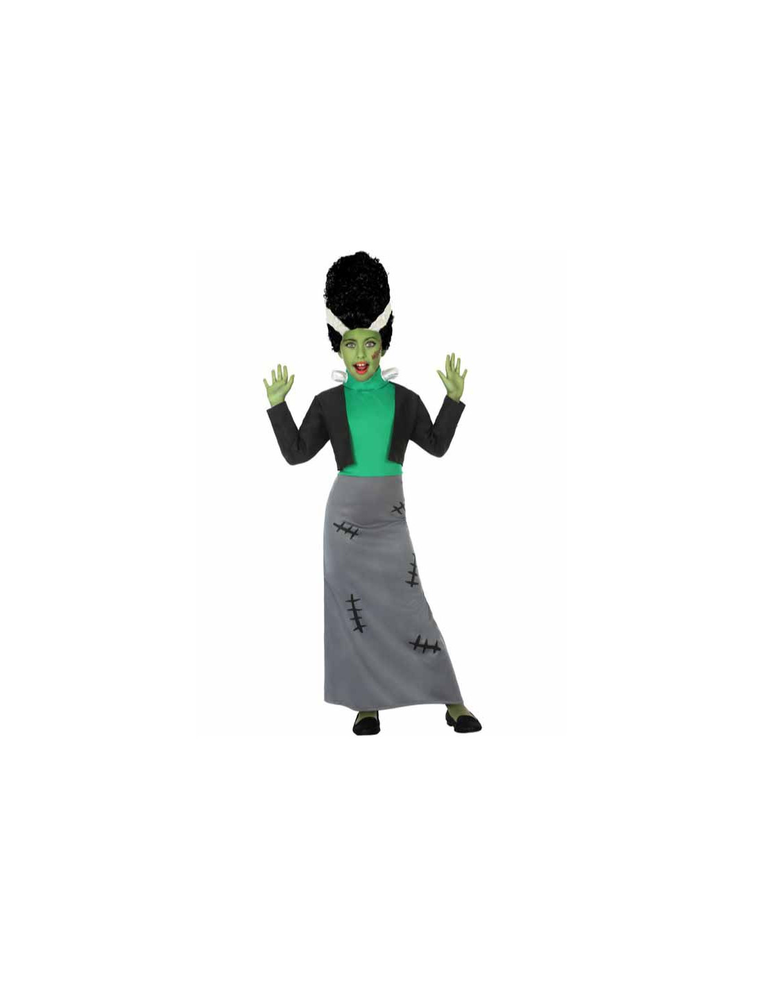Original disfraz Frankenstein niña para Halloween o Carnaval. Tiñe tu piel de verde para convertirte en la versión femenina de este famoso monstruito. Perfecto para disfrazarte en familia.