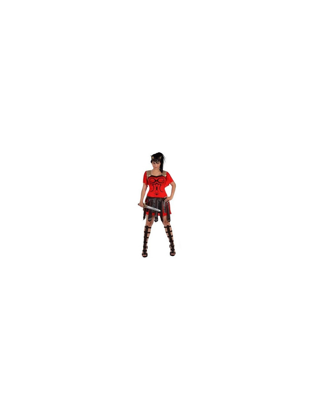 Disfraz gladiadora romana para mujer que incluye vestido y cinturón.