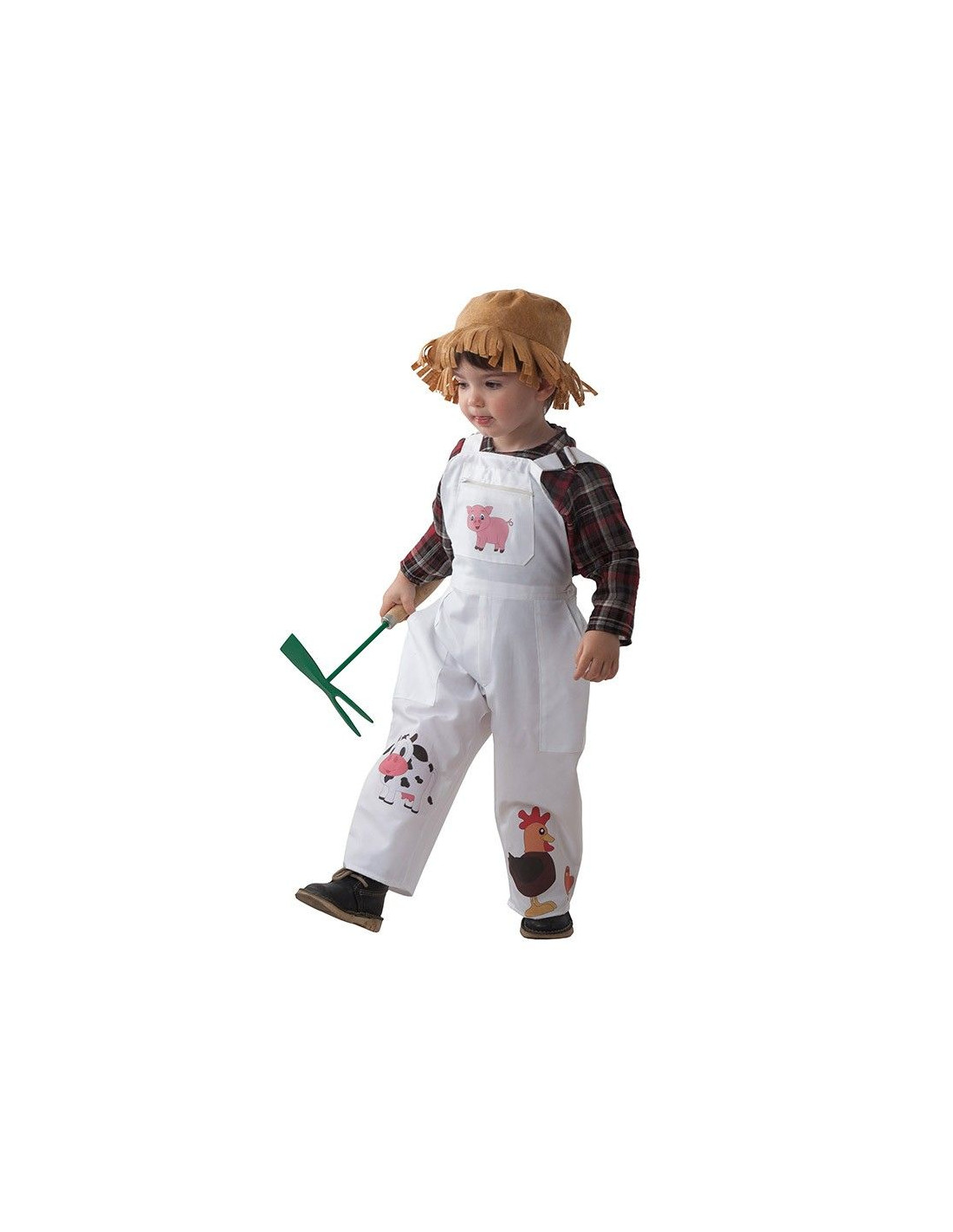 Disfraz granjero niño que incluye gorro, camisa y peto. El peto de la talla 4 dispone de bolsillo mientras que el resto de tallas es un peto sencillo.