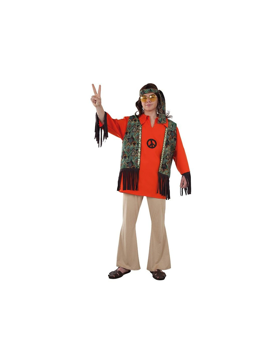 Disfraz hippie hombre que incluye cinta, camisa con chaleco y pantalón. Demuestra tus dotes pacificadoras y revive los años 60 con este disfraz de hippie. Perfecto para fiestas temáticas o carnaval.