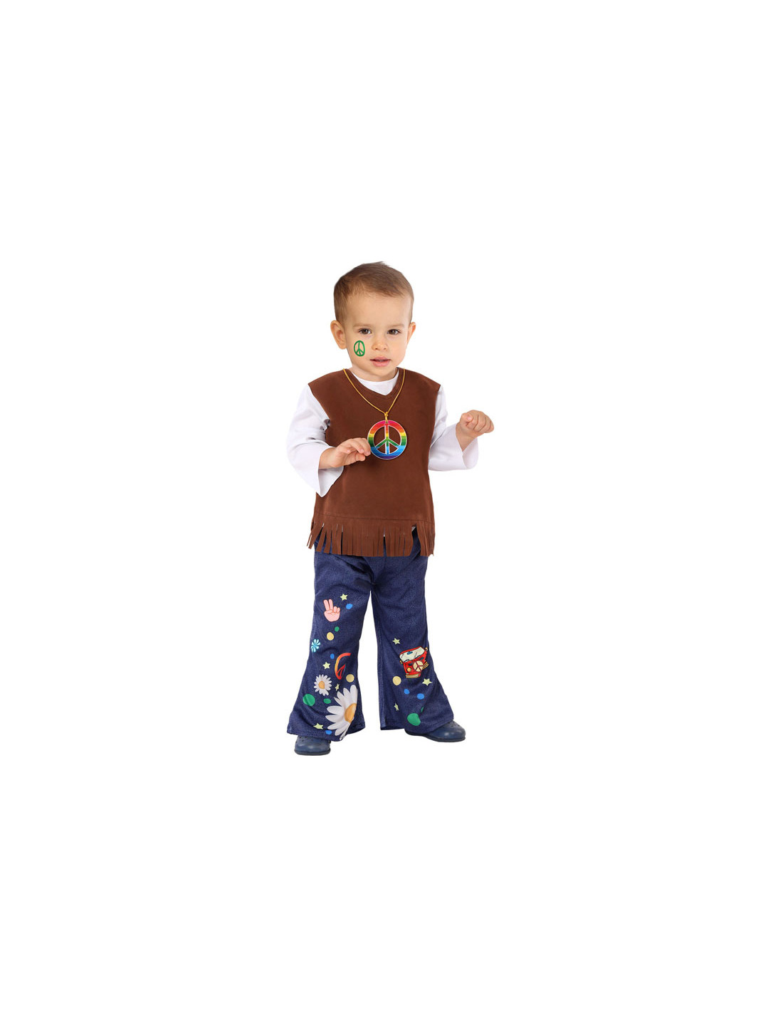 Disfraz hippie para bebé con el que tu pequeño repartirá paz y amor en su primera fiesta de Carnaval. Este completo traje es perfecto para que los peques disfruten cómodamente de Carnaval.