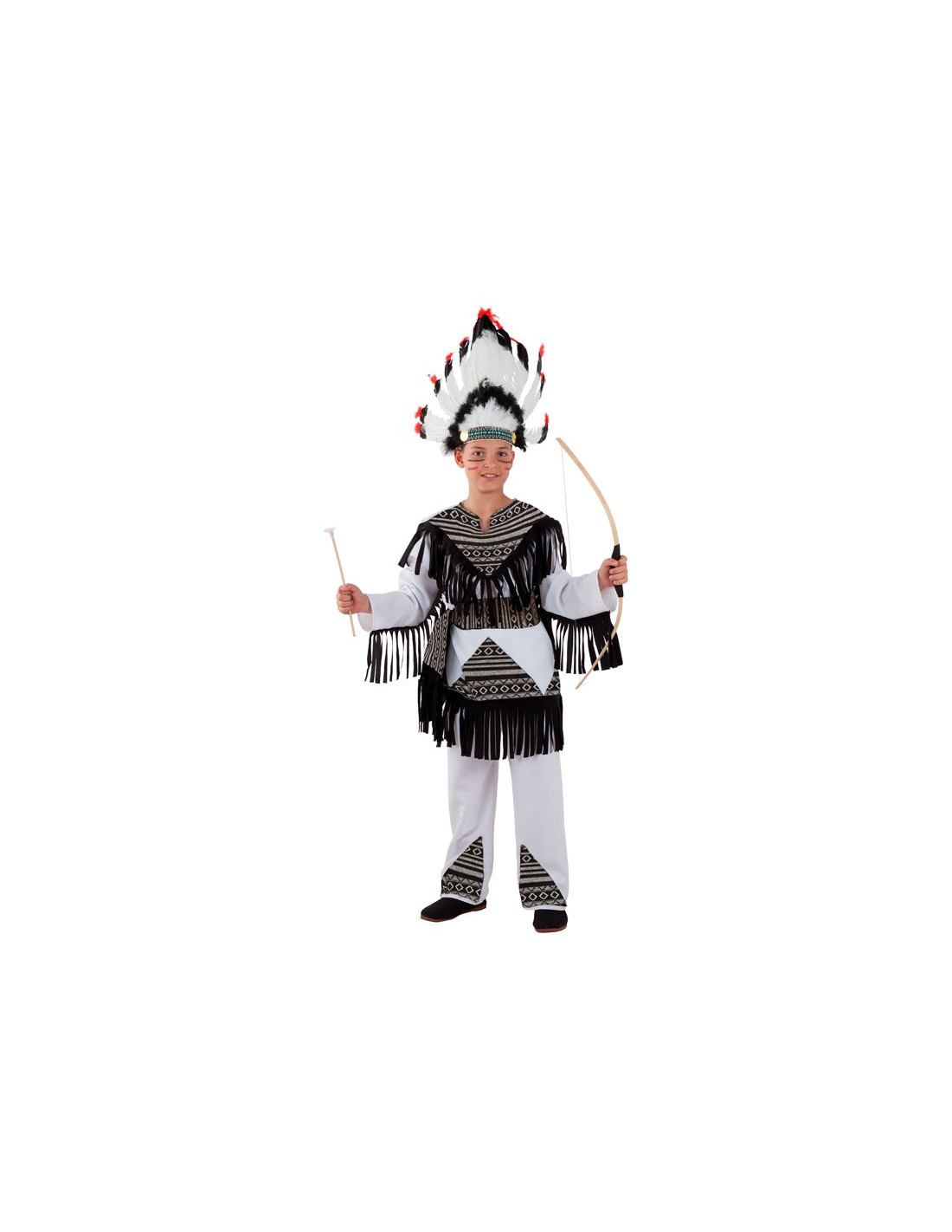 Disfraz indio cherokee para niño con el que invocar a la lluvia junto a tu tribu. Disfrázate en familia o con tu grupo de amigos en Carnaval y fiestas temáticas de indios y vaqueros.