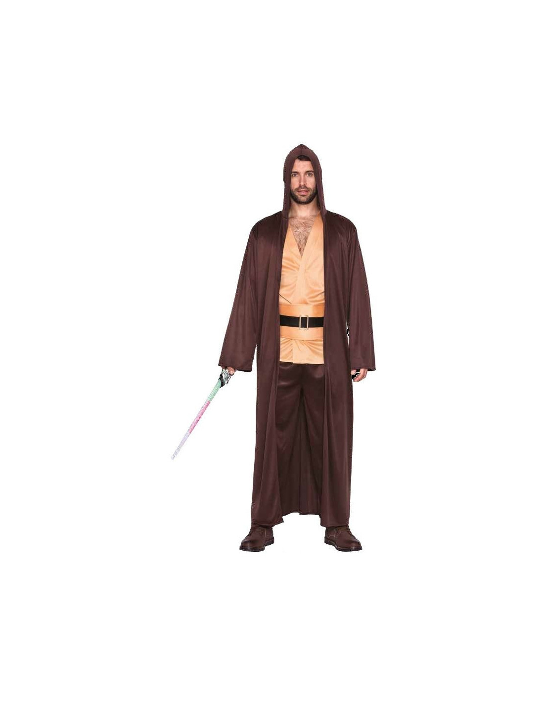 Disfraz Jedi Star Wars para combatir y defender la República Gláctica. El traje incluye túnica con capucha, camiseta, cinturón, pantalón. Talla única
