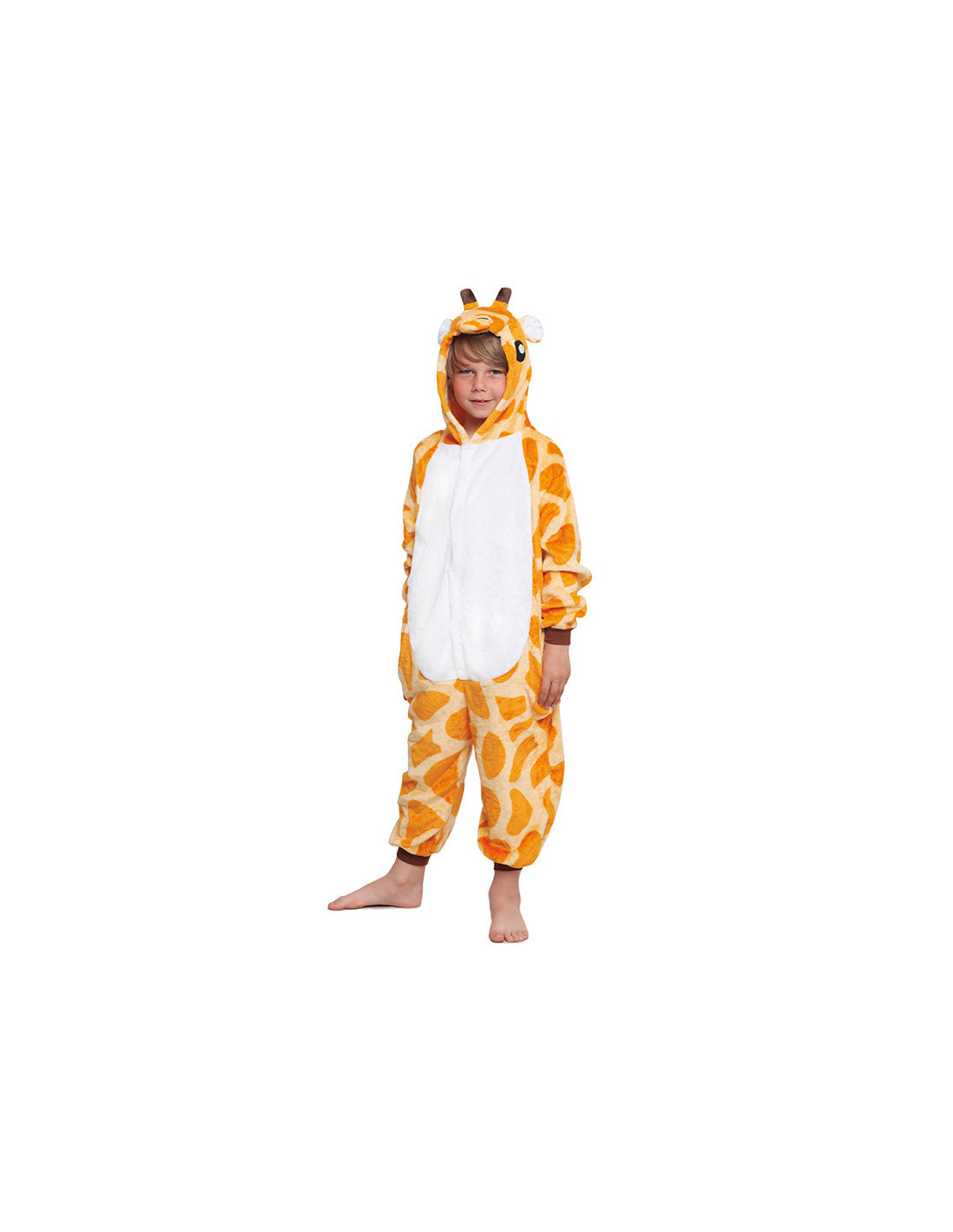 Disfraz jirafa Kigurumi infantil que incluye un mono de cuerpo entero con capucha. Confeccionado en tejido muy suave.