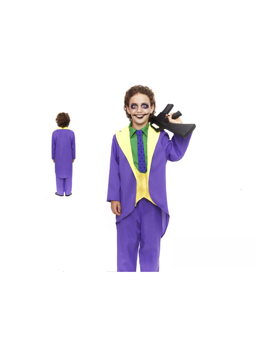 Disfraz Joker infantil que incluye chaqueta, pantalón y corbata.