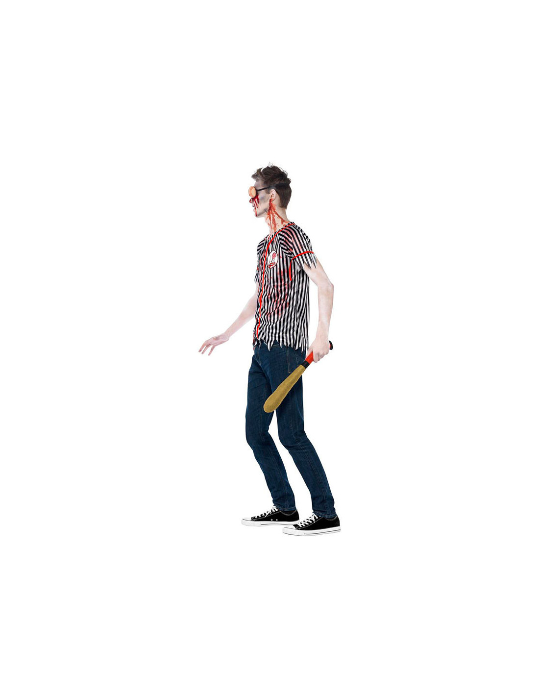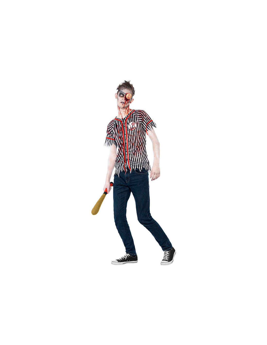 Disfraz jugador béisbol zombie que contiene camiseta, parche y bate de béisbol blando.