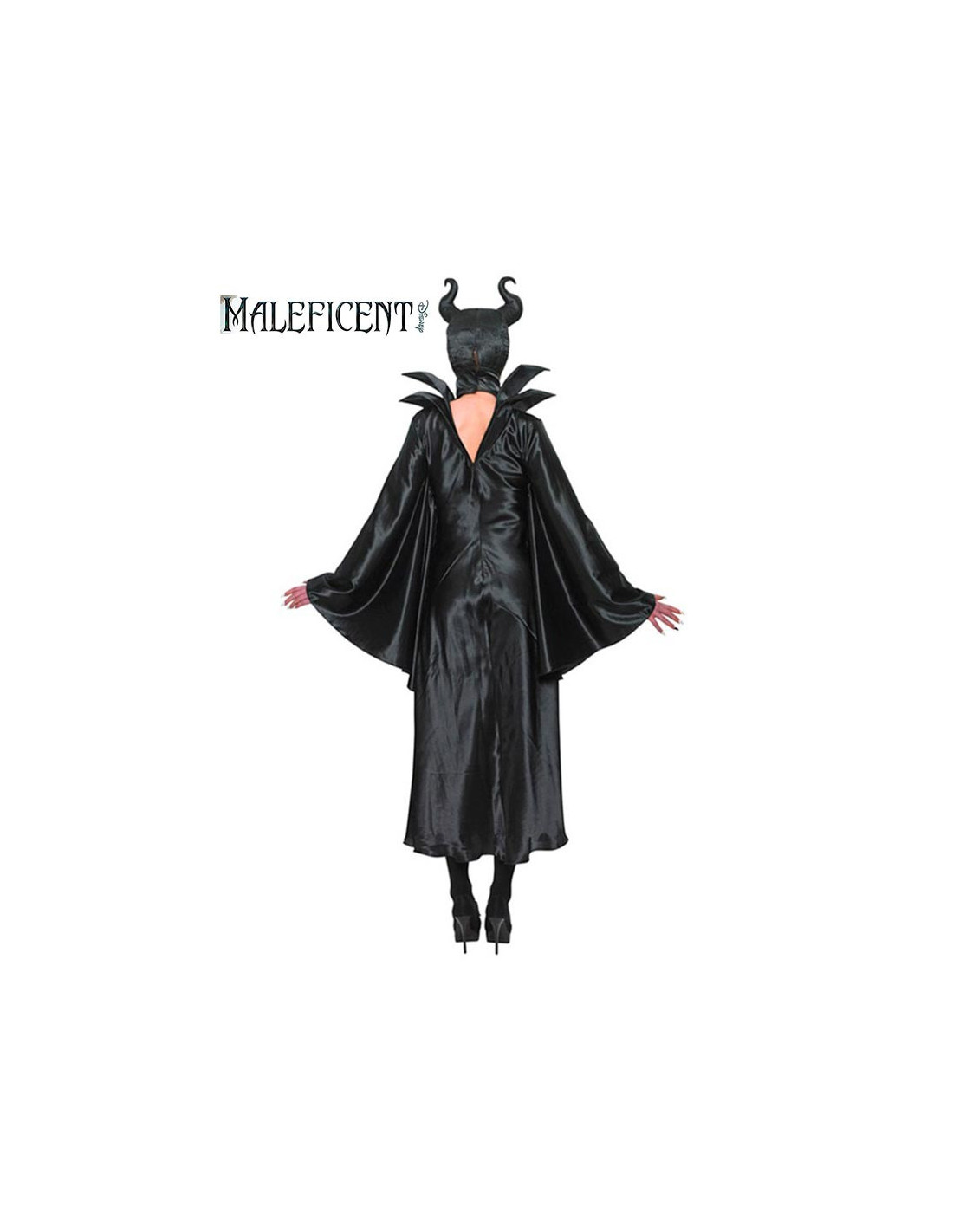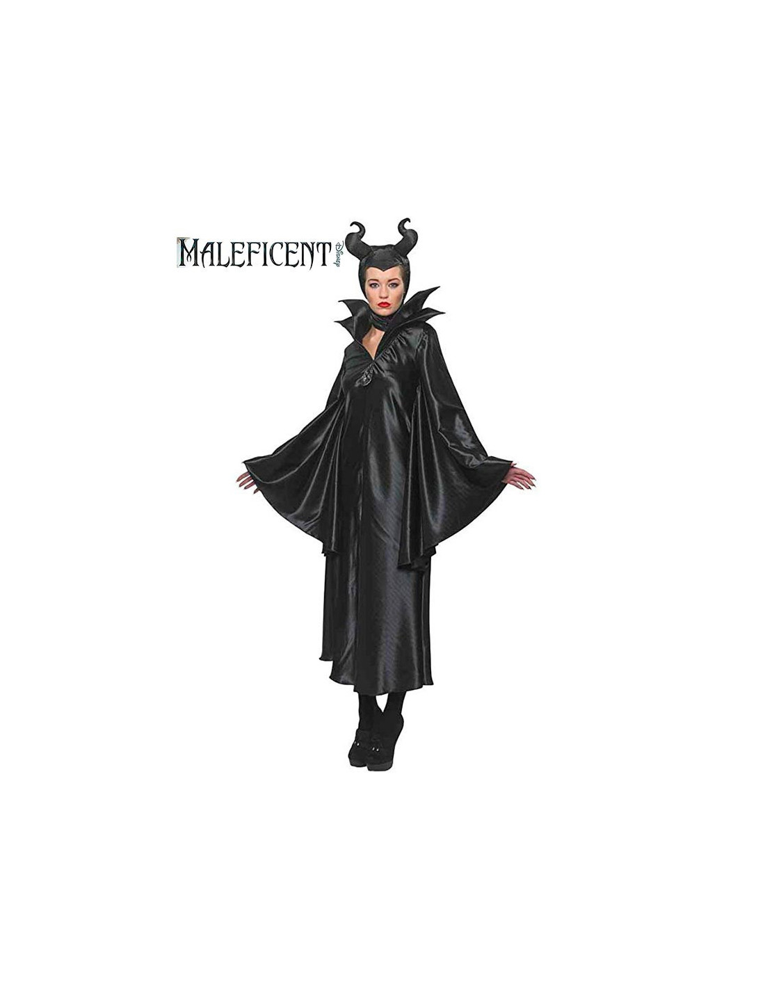 Disfraz de Bruja Maléfica para convertirte en la mala de Blancanieves. Incluye un elegante vestido negro con las mangas de estilo murciélago, cuello en pico, y una magnífica pieza para la cabeza de color negro con la forma de dos cuernos enroscados que imitan a los de la corona que usa el personaje. Medida contorno pecho 91-96 cm y contorno cintura 68-76 cm.
