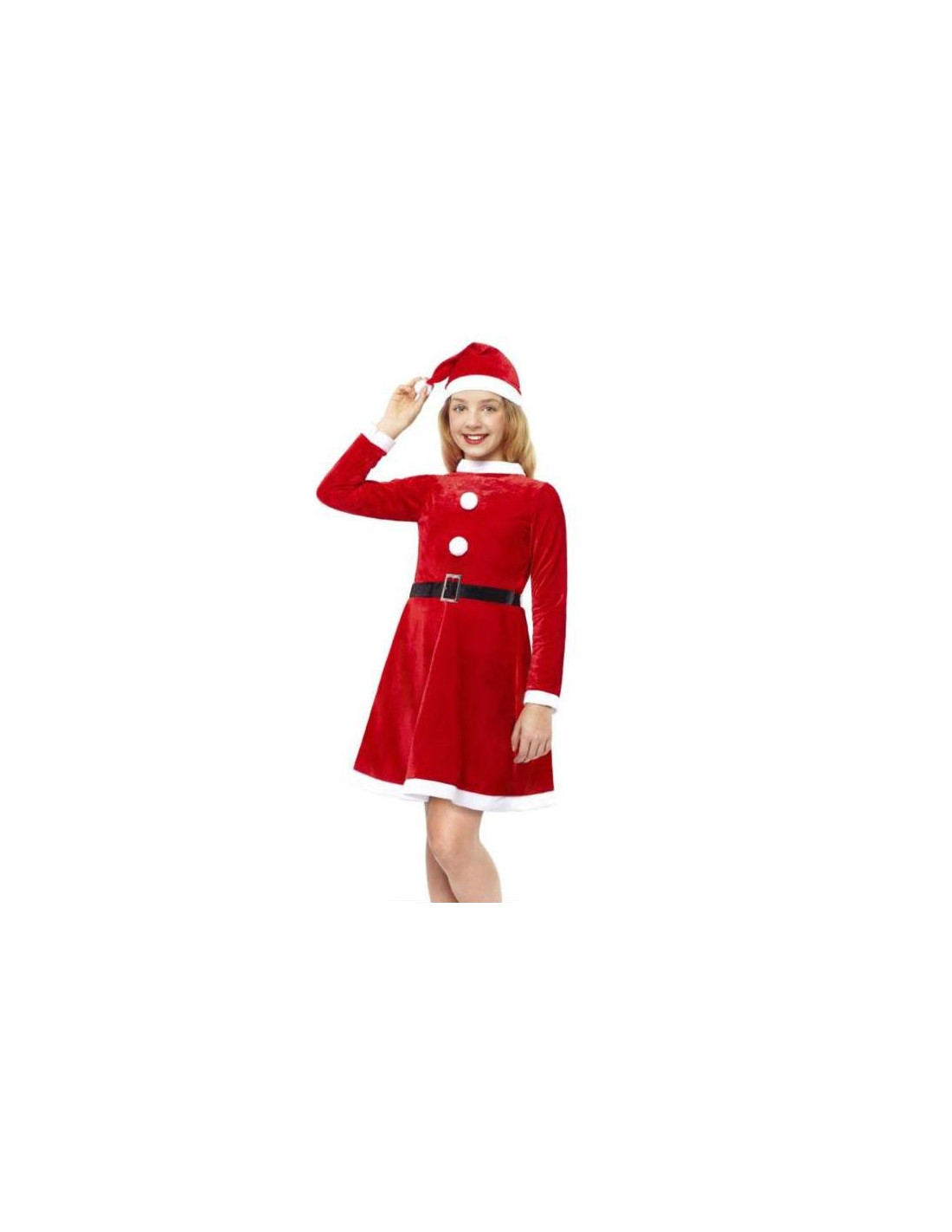 Disfraz Mamá Noel Claus infantil que incluye vestido, gorro y cinturón.