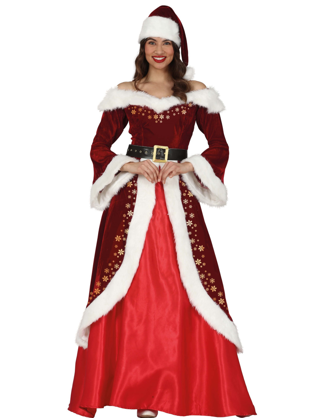 Disfraz Mamá Noel elegante mujer que incluye gorro, vestido y cinturón
