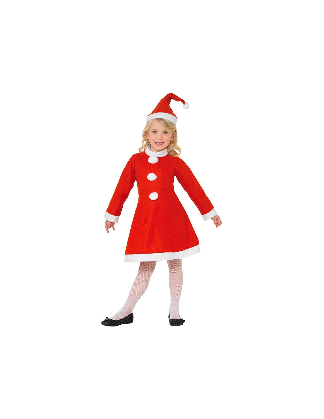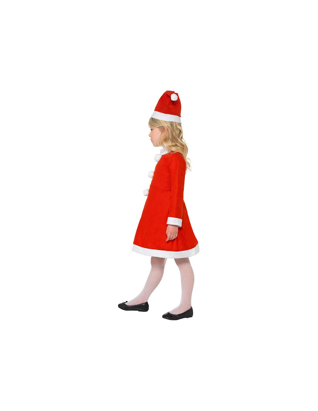 Este disfraz Mamá Noel para niña incluye un vestido de manga larga rojo con pompones blancos a modo de botones y un gorro a juego.