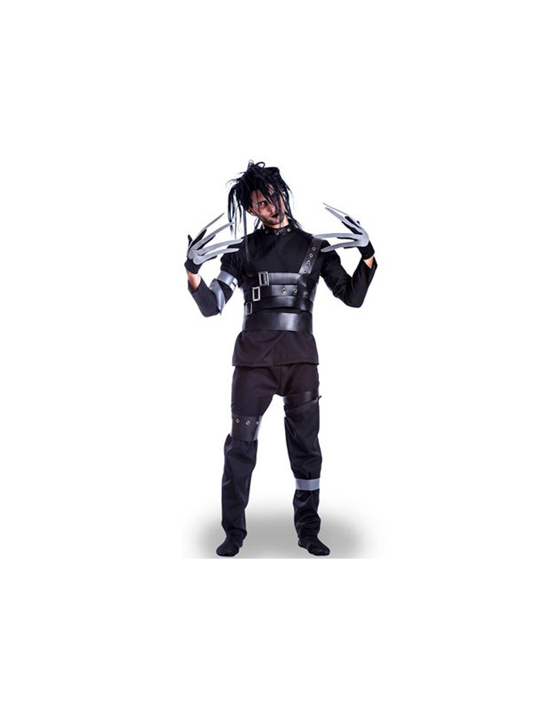 El disfraz Manostijeras adulto que contiene camisa, pantalón, cinturones y guantes.