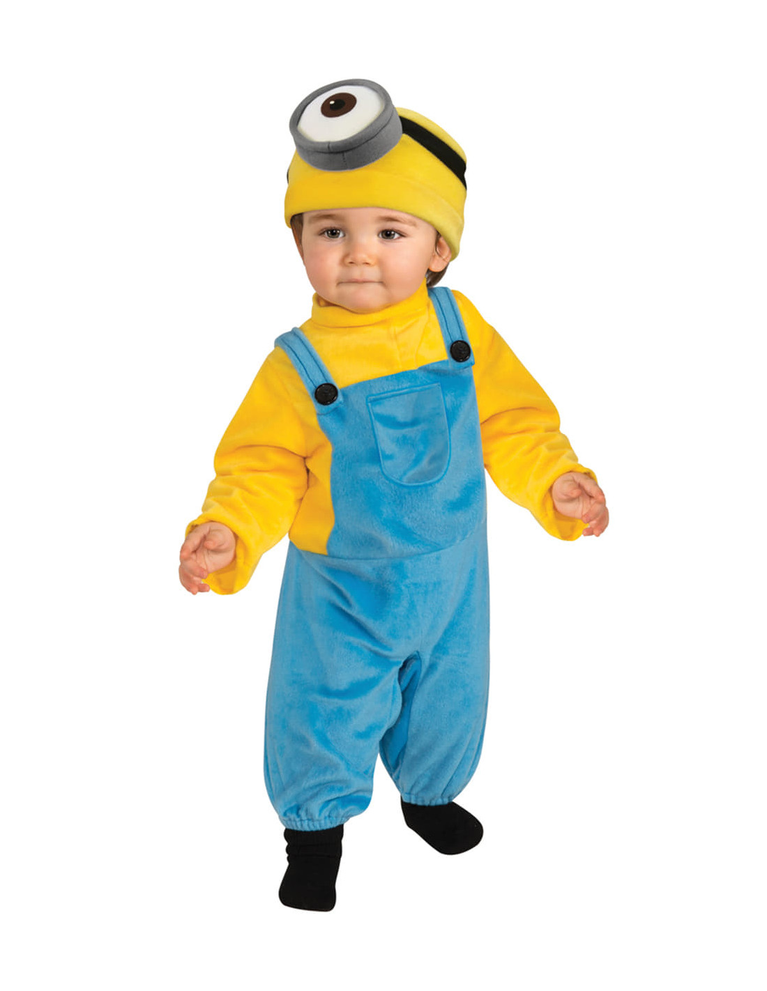 Disfraz Minion para bebé que incluye un mono y gorro con ojos.