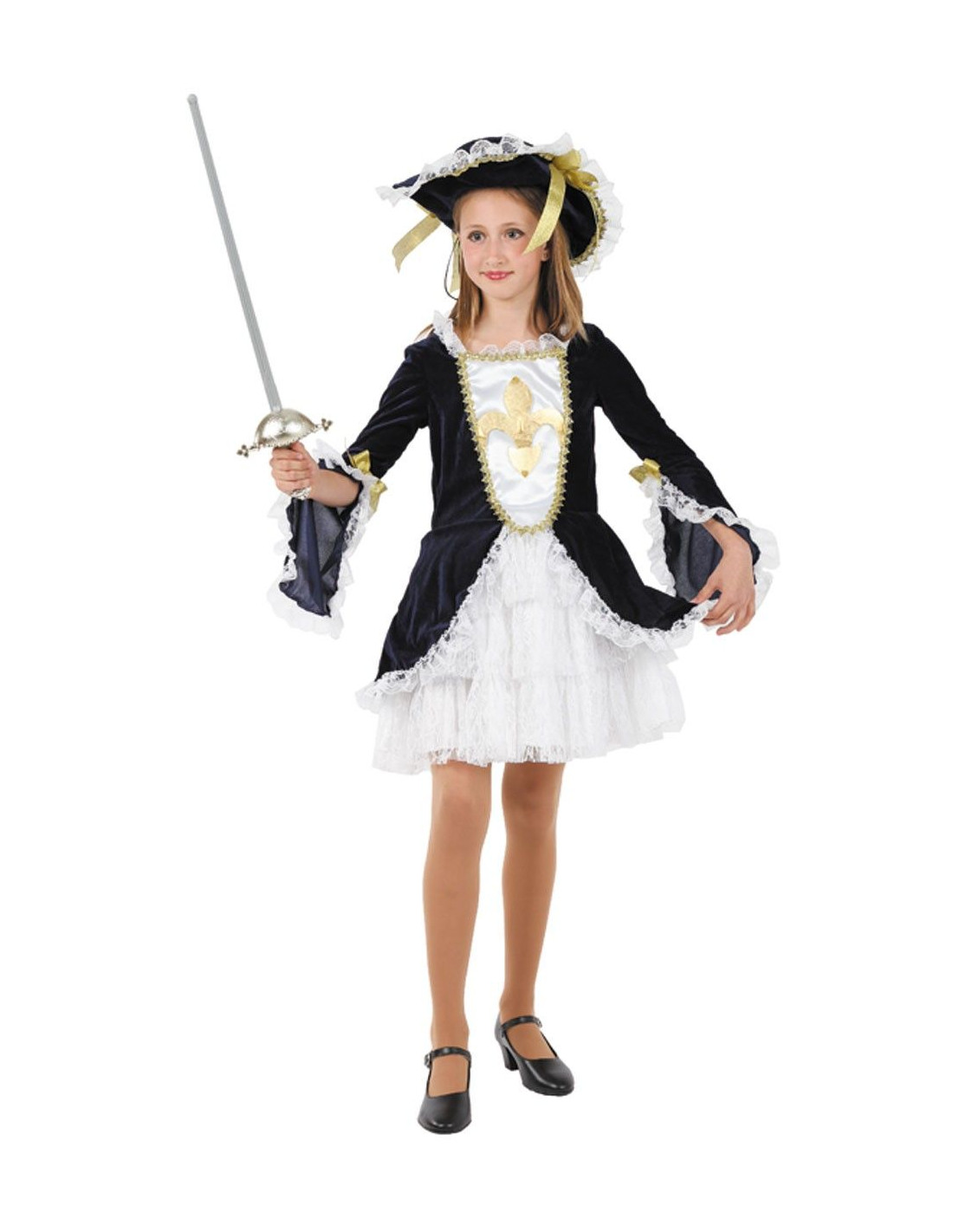 Disfraz de mosquetera niña que incluye vestido y sombrero. No incluye florete.