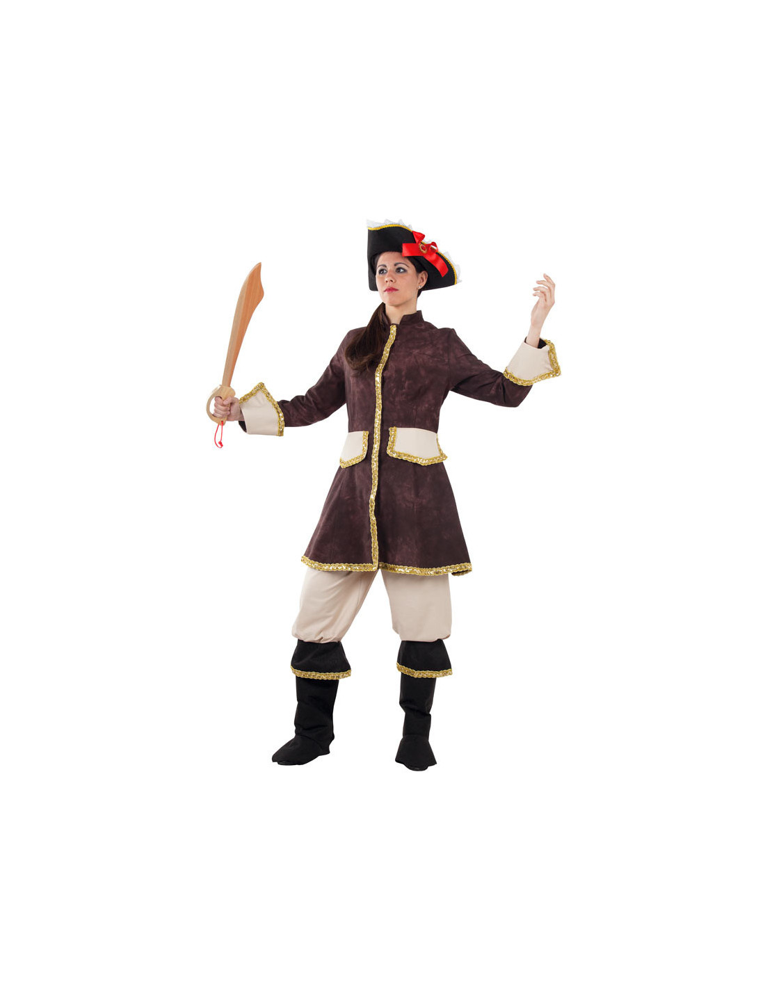 Disfraz de mosquetera para mujer que incluye chaqueta, pantalón y cubrebotas. No incluye espada.