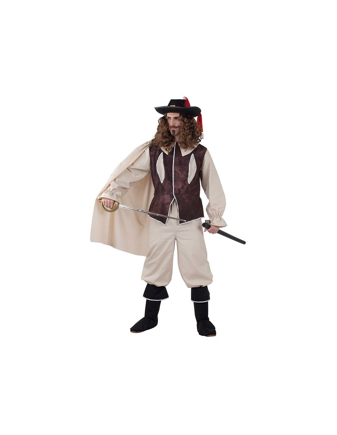 Disfraz mosquetero adulto queincluye casaca, capa, pantalón y cubrebotas. No incluye florete, peluca ni sombrero.