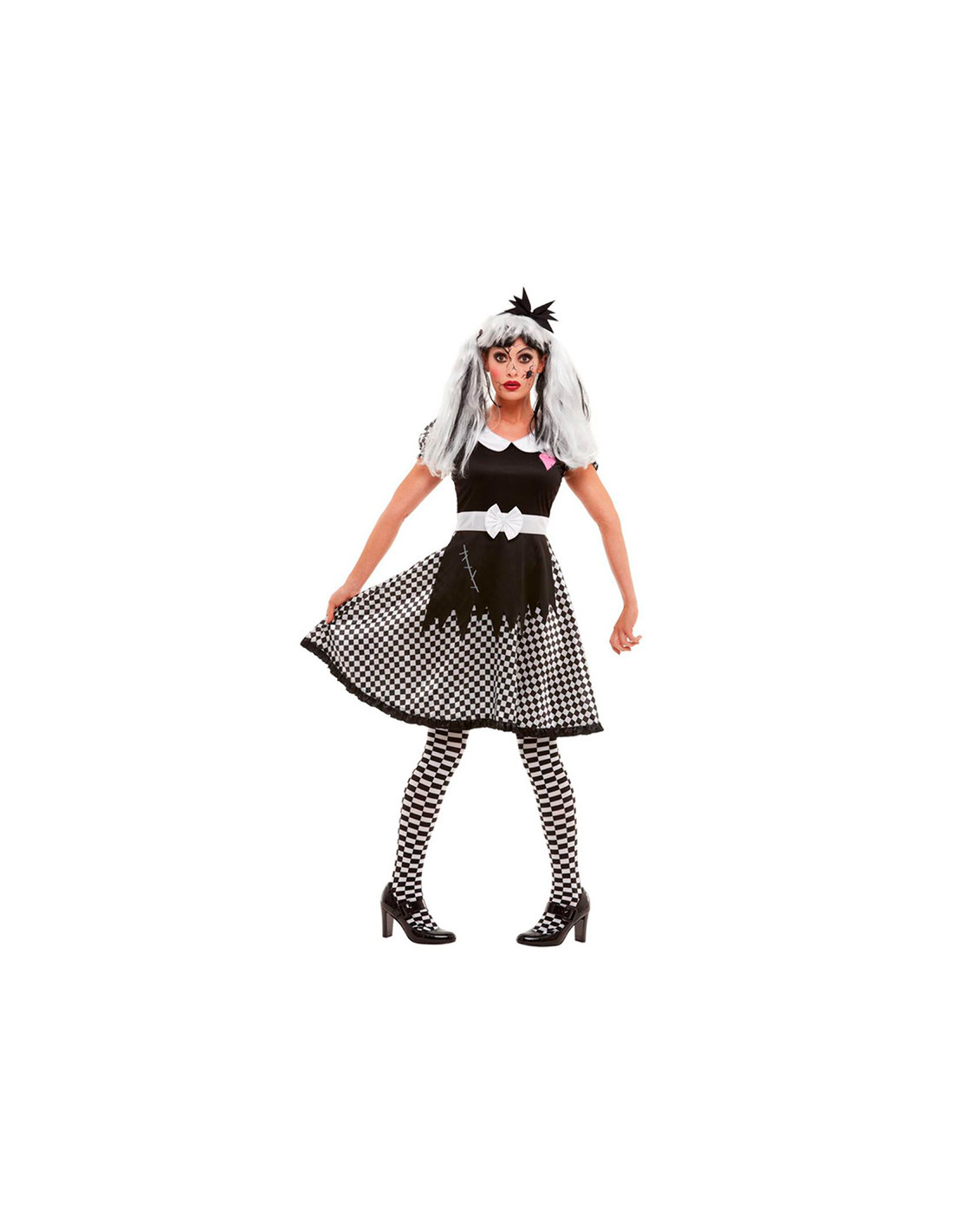 Disfraz muñeca rota para mujer que incluye vestido y diadema con lazo.