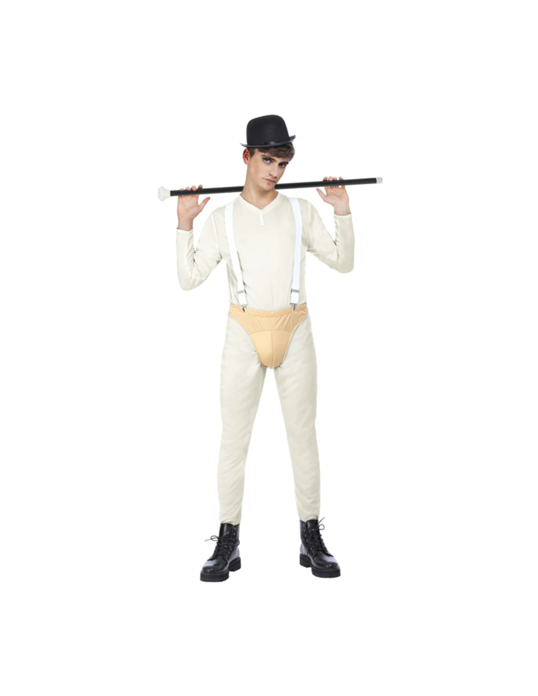 Este completo traje contiene mono, slip, tirantes y sombrero.