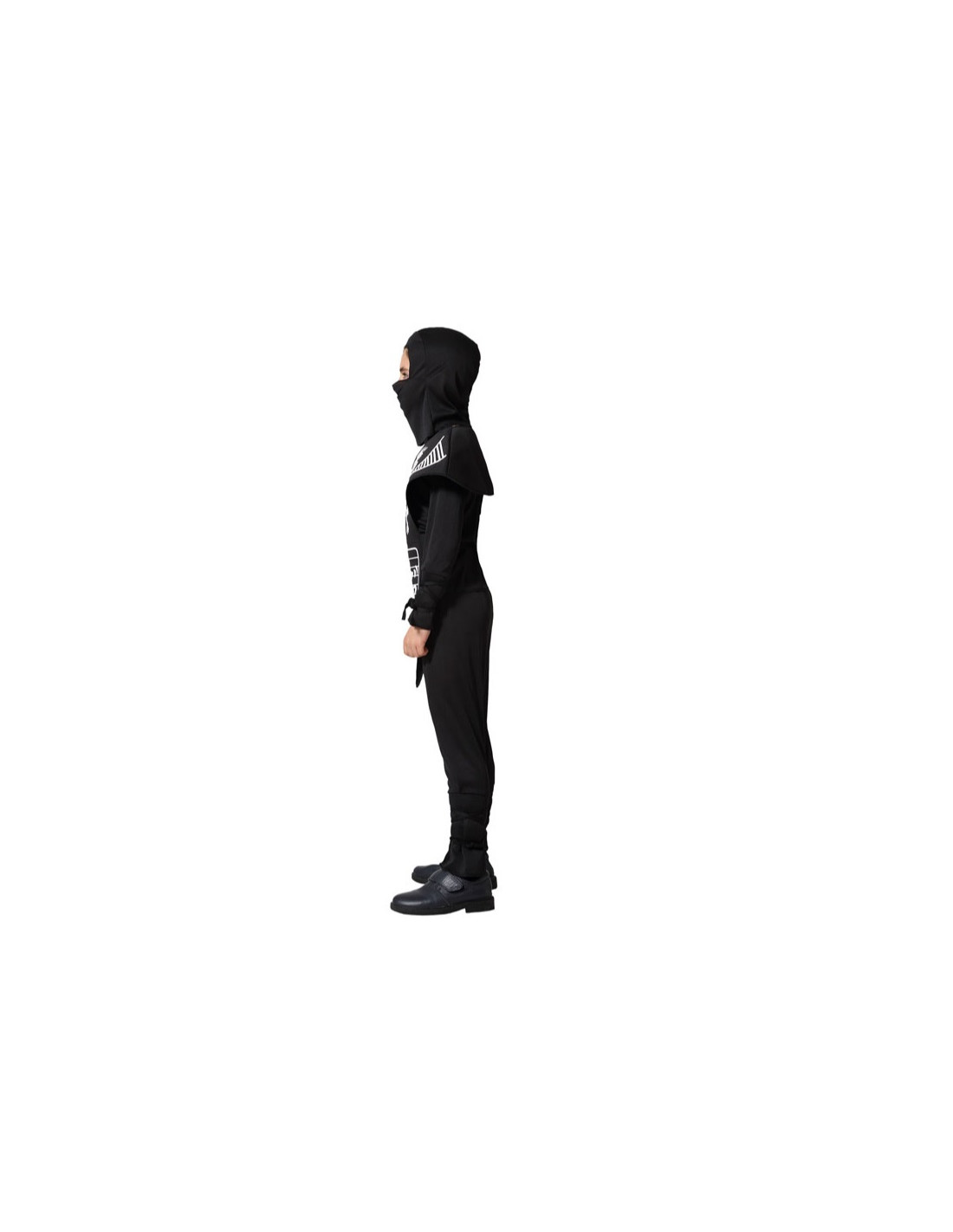 Este completo disfraz de ninja para niño contiene camiseta, pantalón, pasamontañas, muñequeras y pechero estampado.