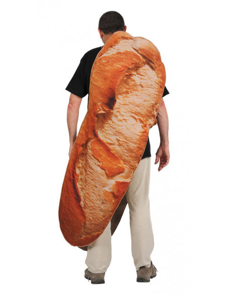 Disfraz original de barra de pan que incluye barra de pan impresa por delante y por detrás.