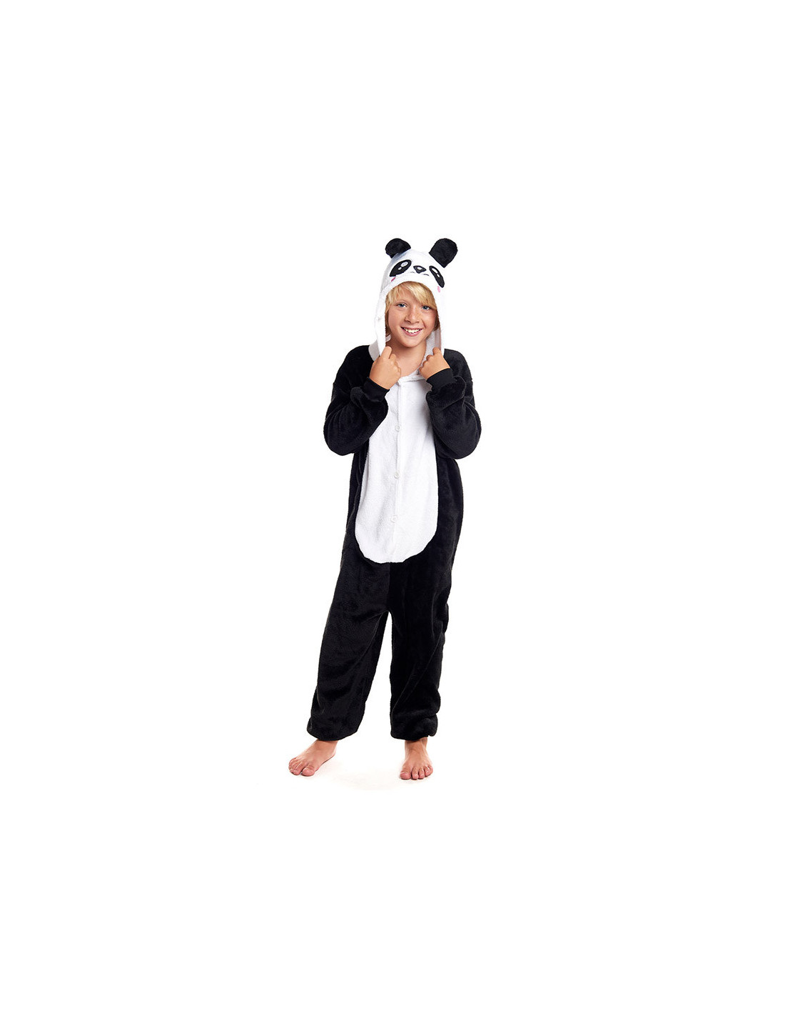 Disfraz oso panda Kigurumi infantil que incluye un mono de cuerpo entero con capucha y tela suave con pelito.