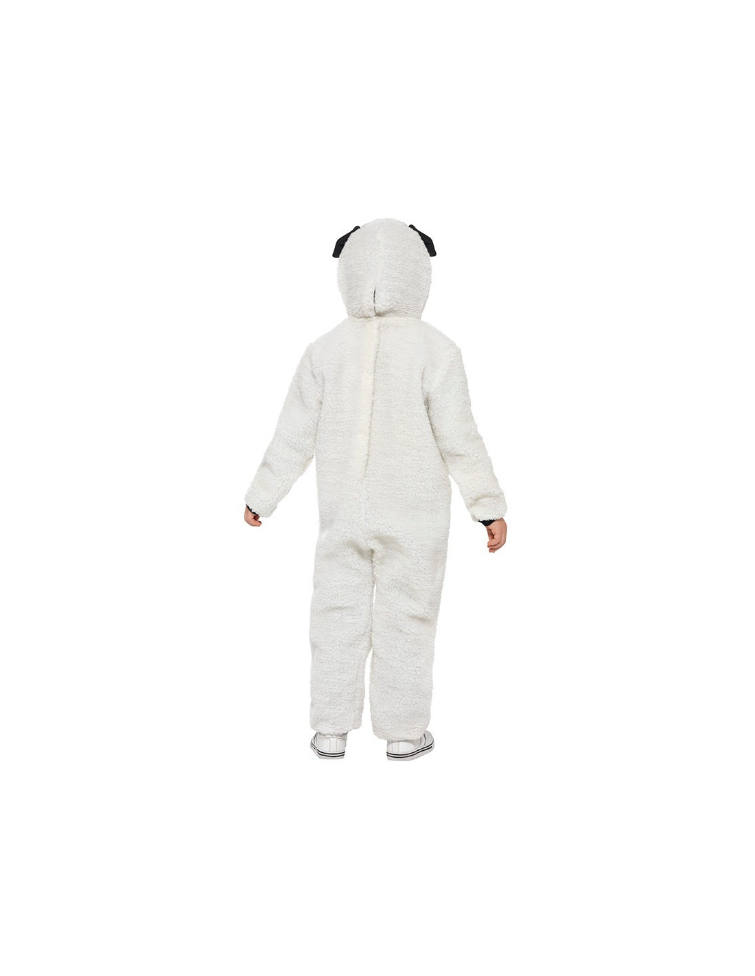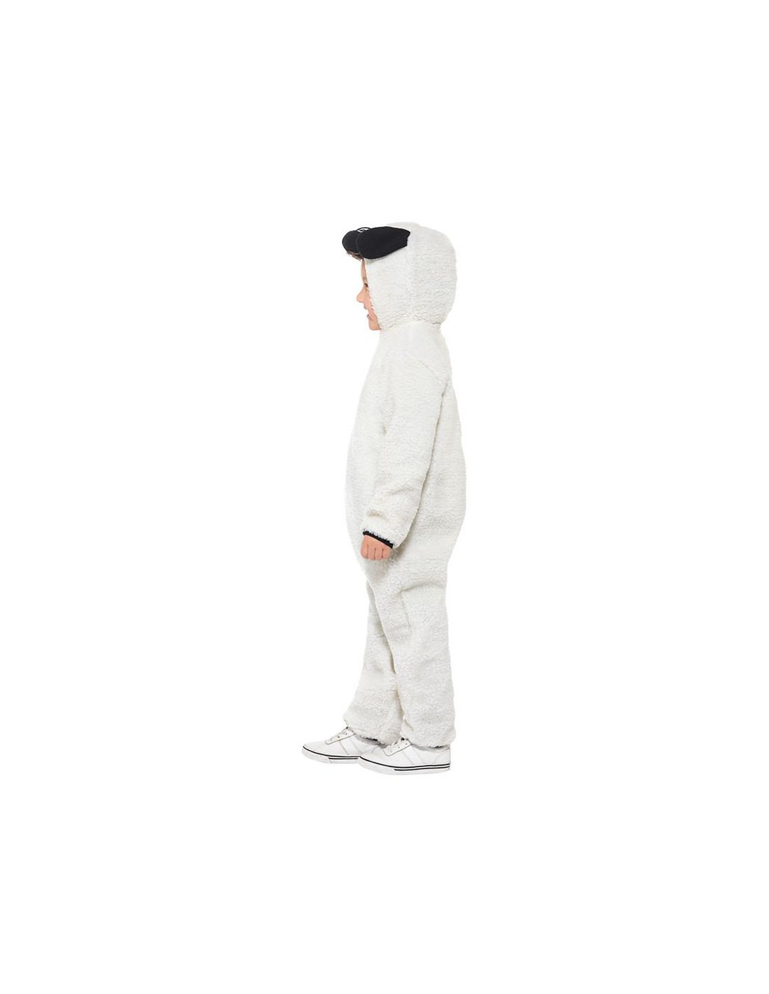 El disfraz ovejita infantil incluye un mono de cuerpo entero blanco de borreguito con una capucha que tiene la cabeza y orejitas de una oveja.