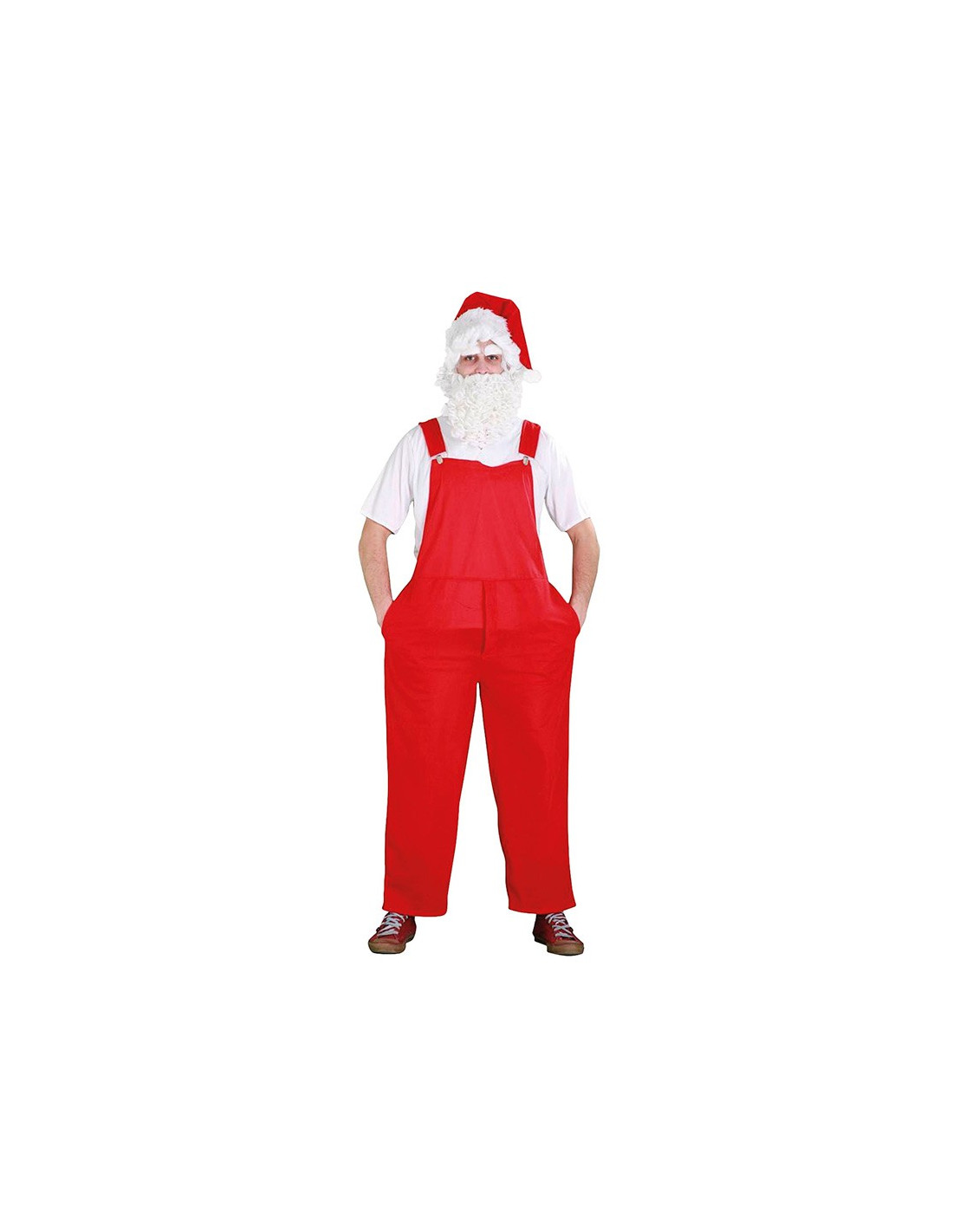 Disfraz Papá Noel con peto que contiene un peto rojo con tirantes. No olvides la inconfundible barba y peluca blanca para caracterizarte y su barriga.