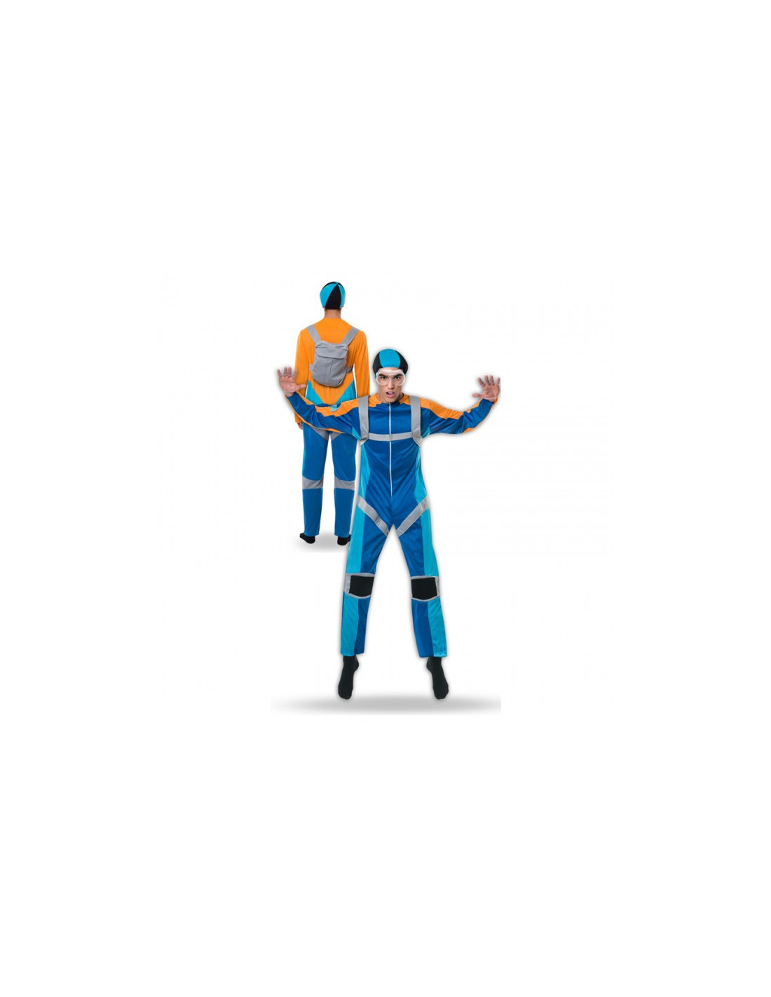 Disfraz paracaidista para hombre que incluye mono, gorro y mochila.