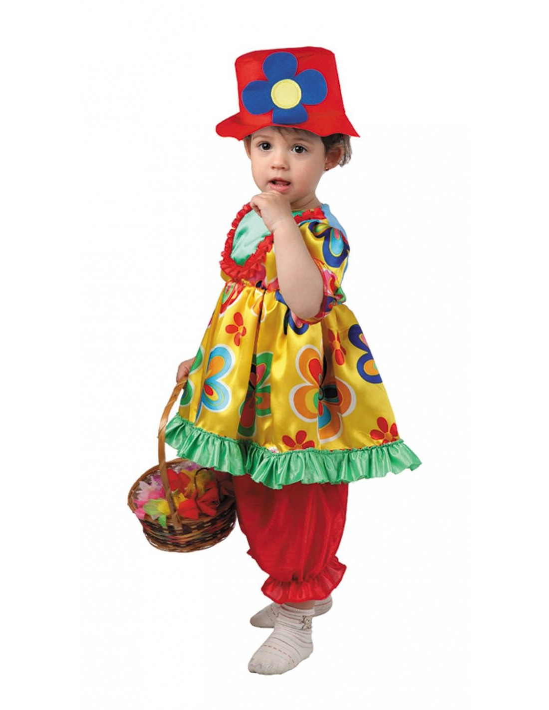 Disfraz payasita bebé que incluye gorro, vestido y pantalón.